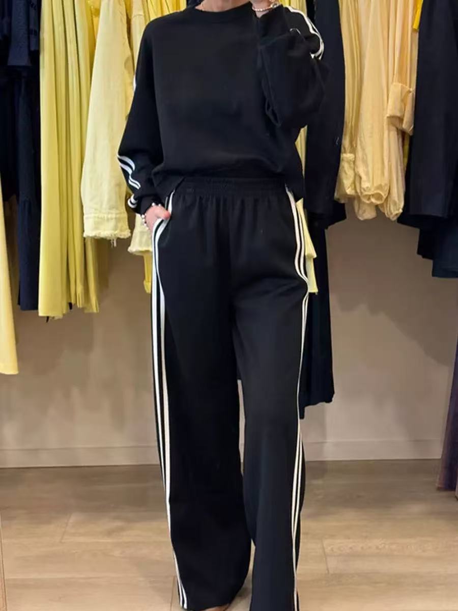 All-match Side Striped Casual Suit Pocket Two-piece Set