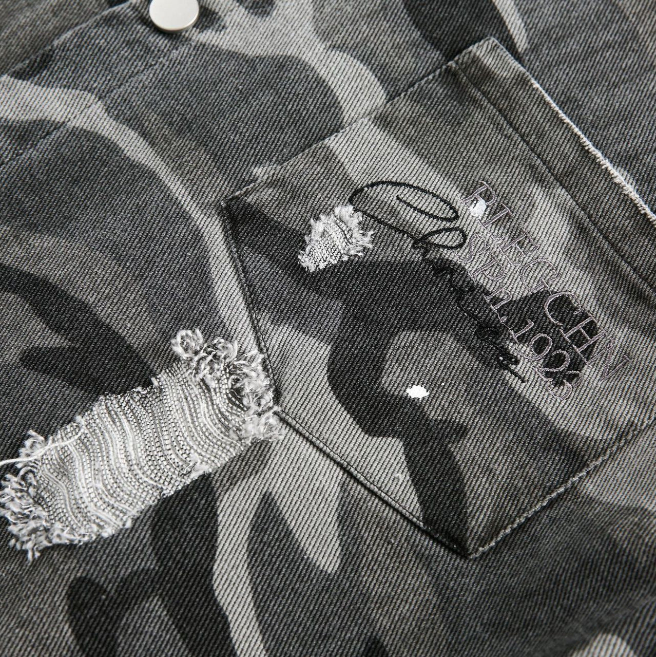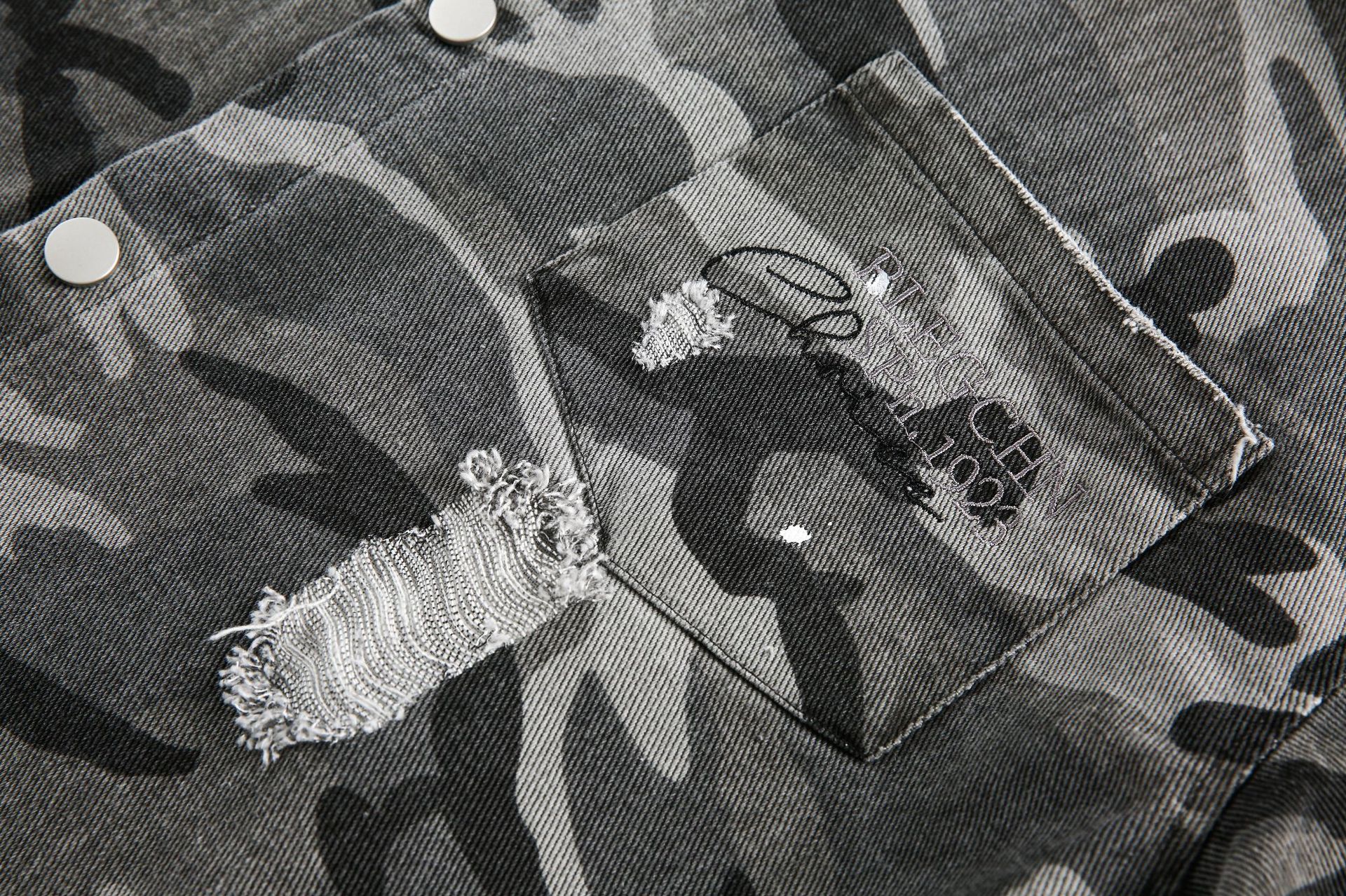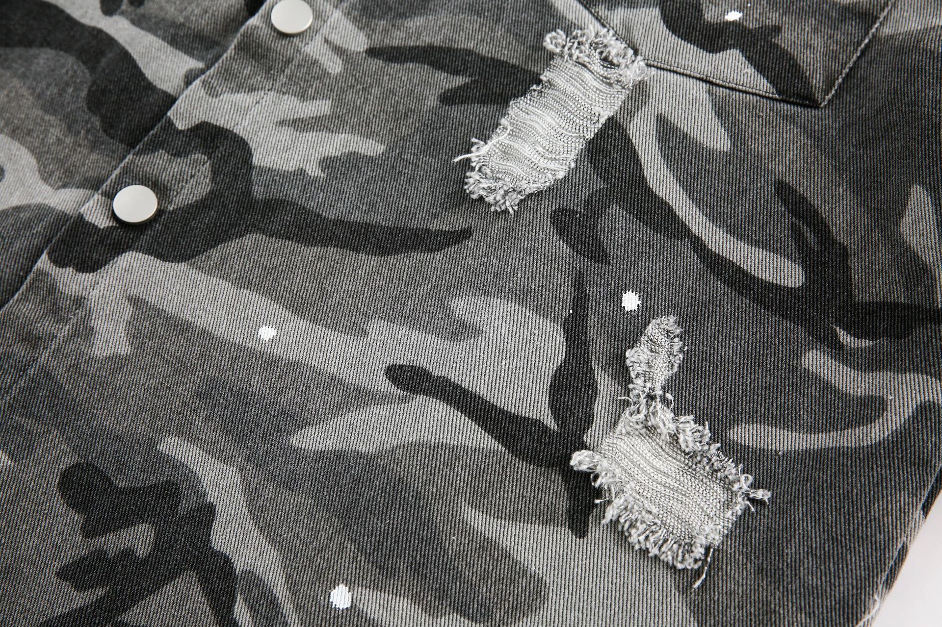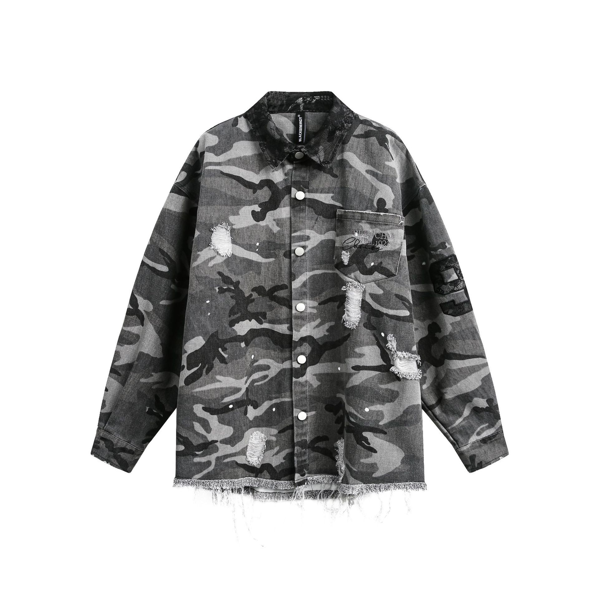 American Retro Loose Heavy Industry Distressed Camouflage Long Sleeve Shirt