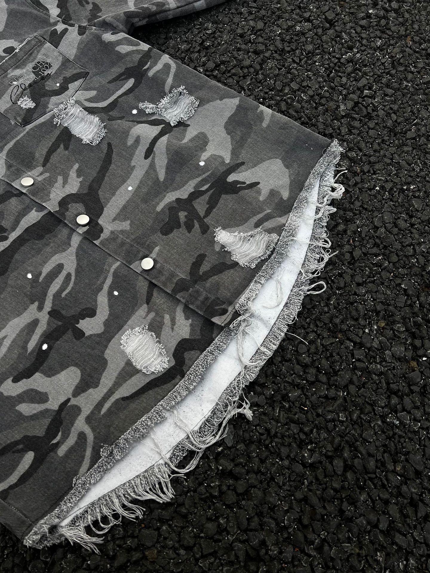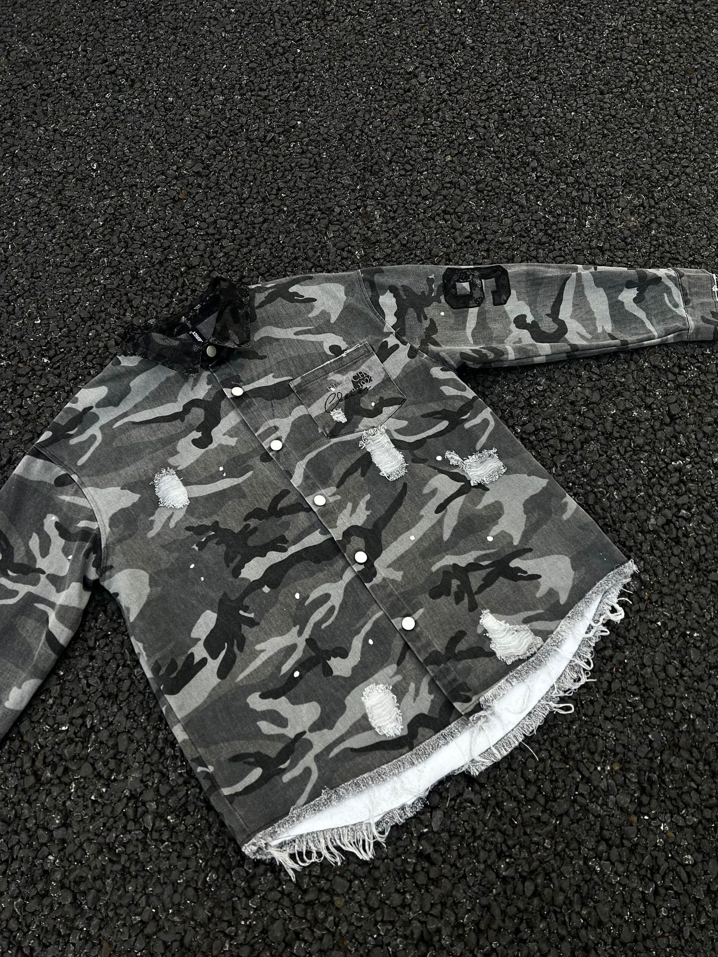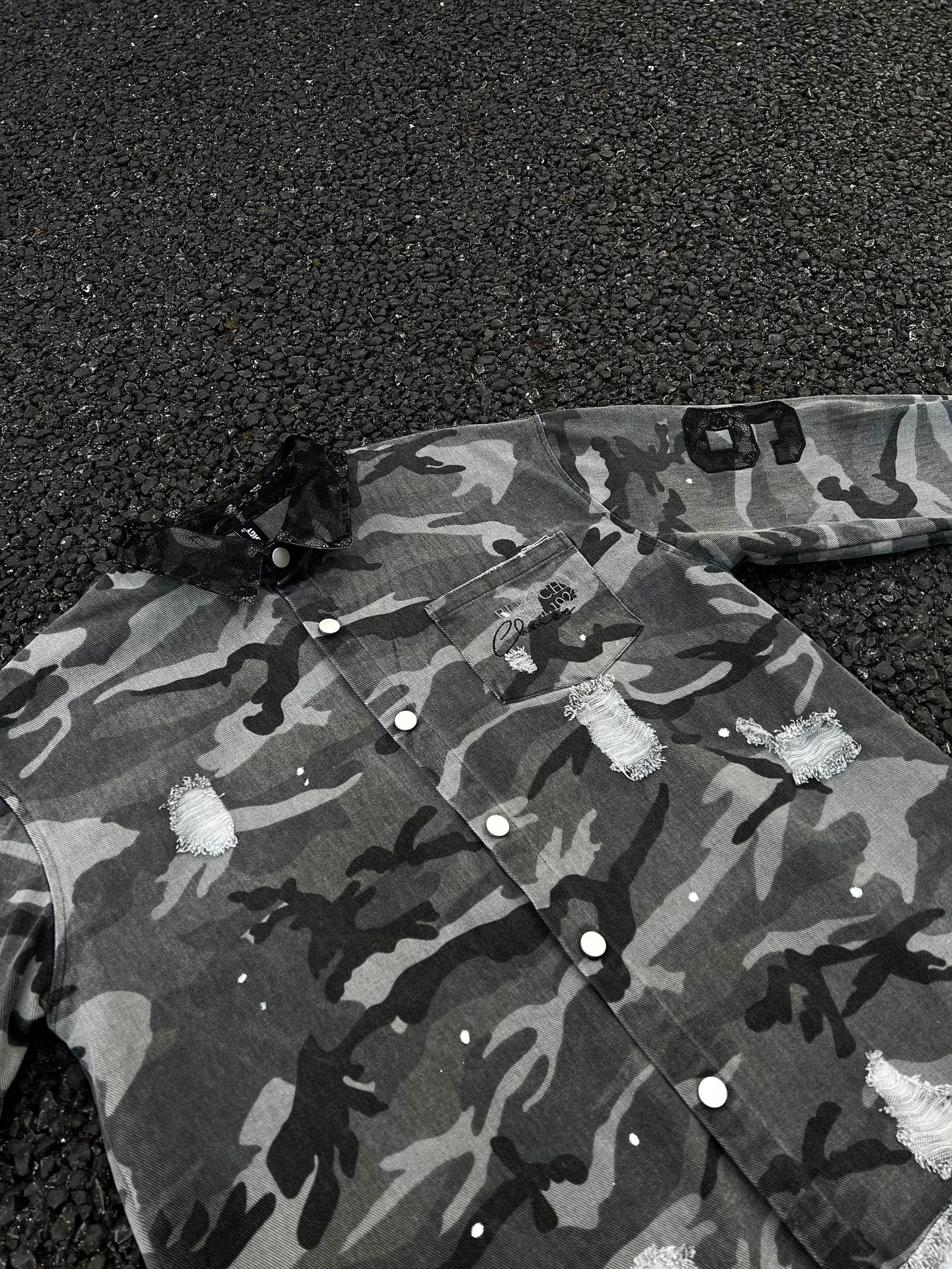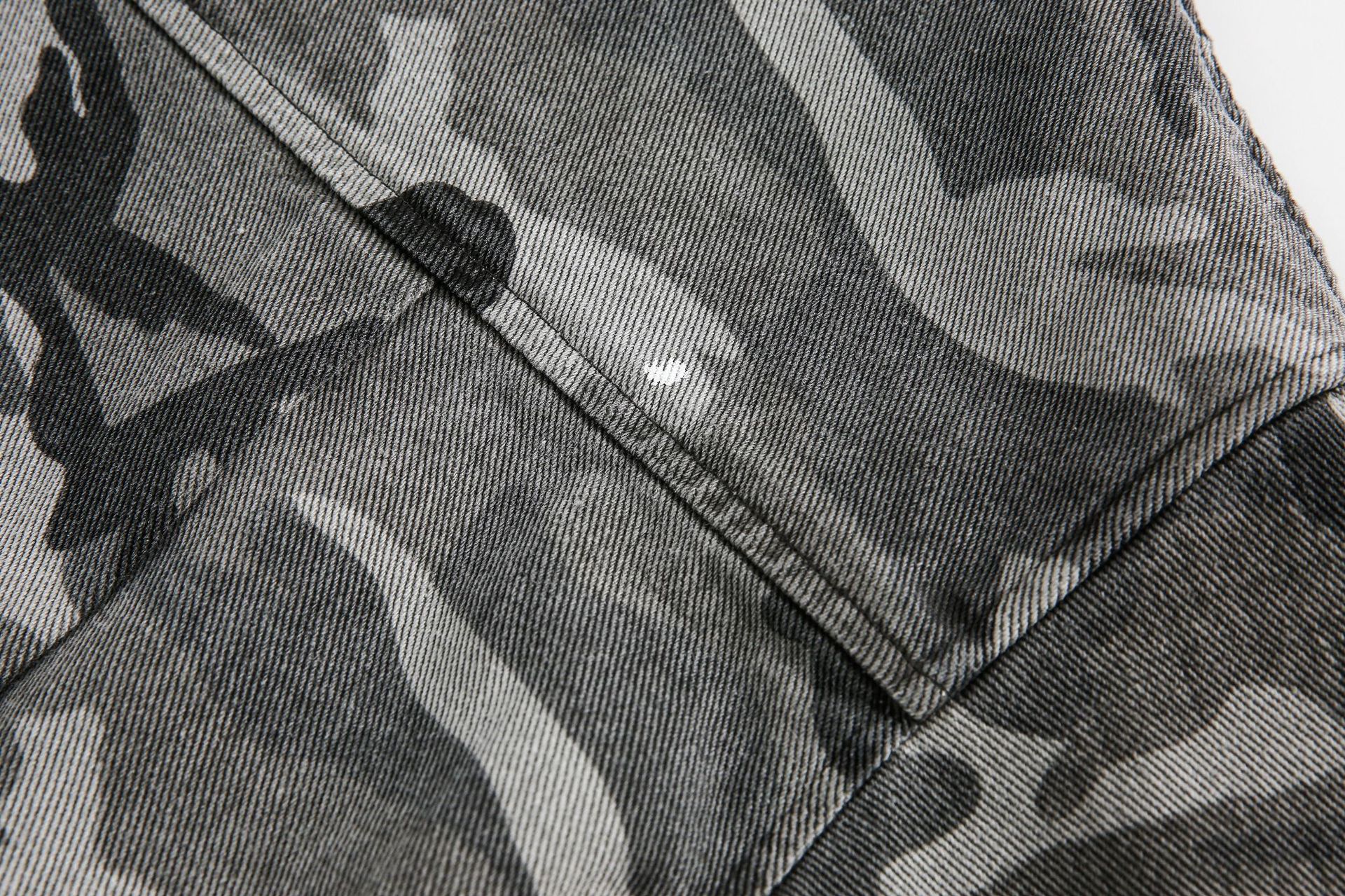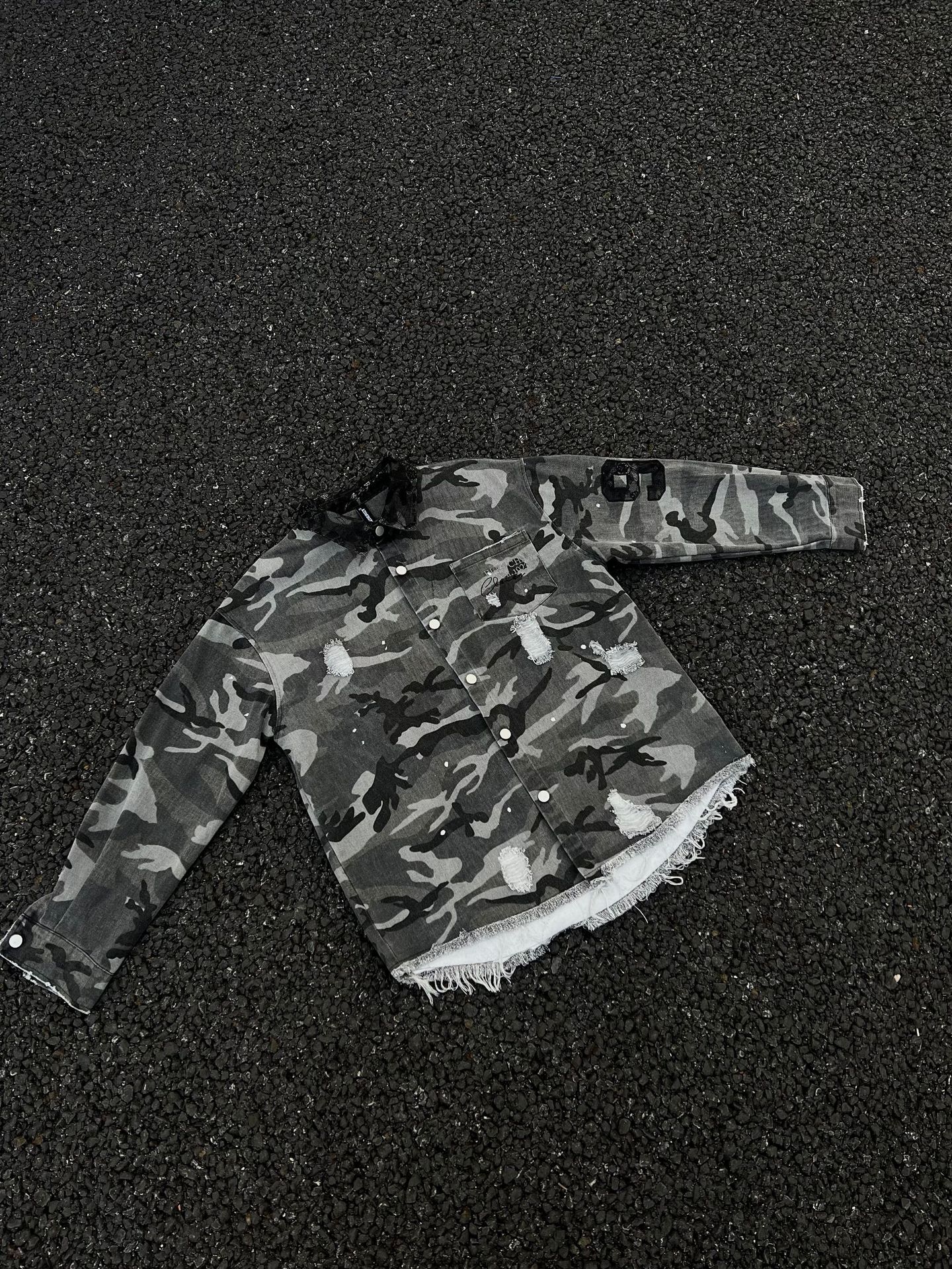 American Retro Loose Heavy Industry Distressed Camouflage Long Sleeve Shirt