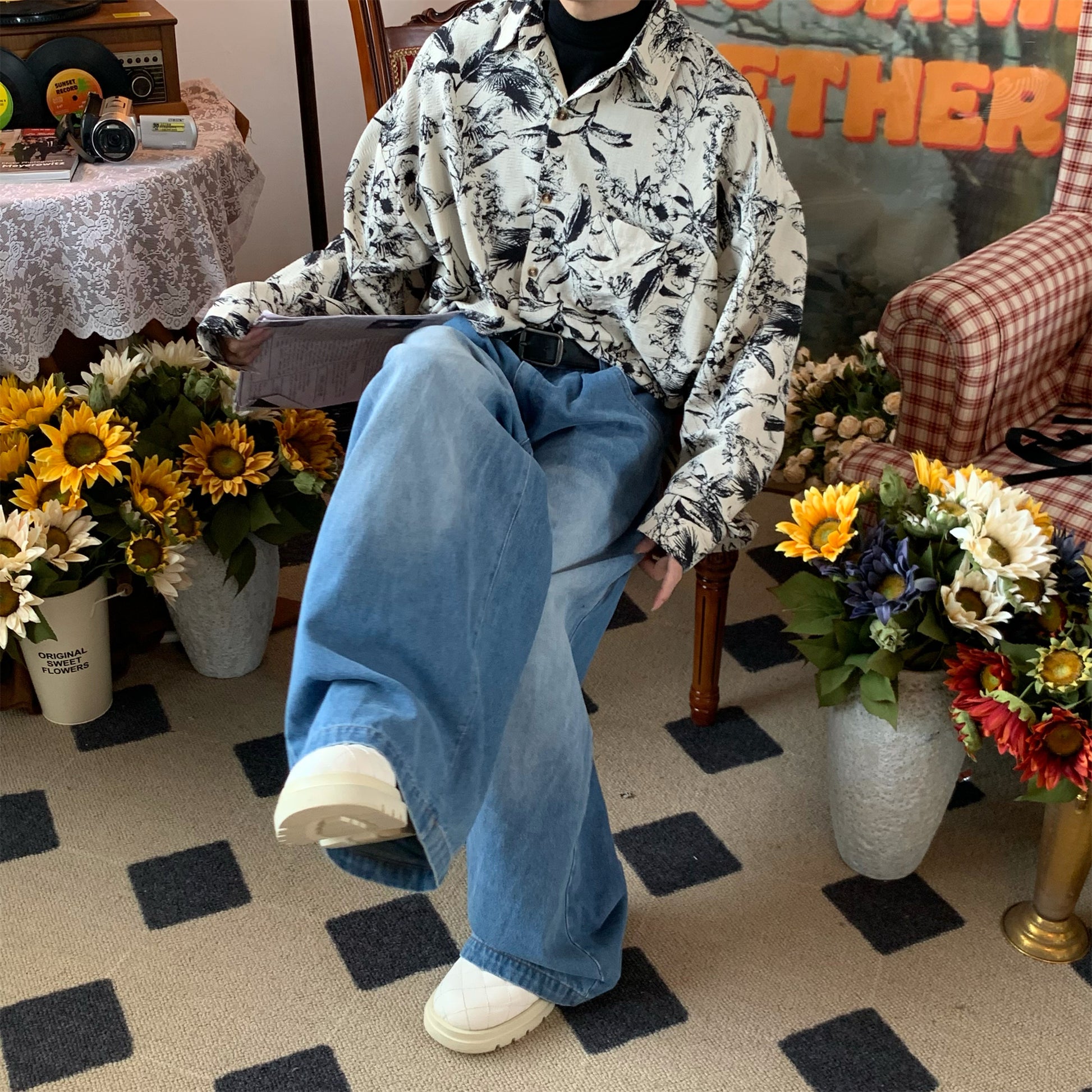 Autumn Vintage Printed Long Sleeved Shirt