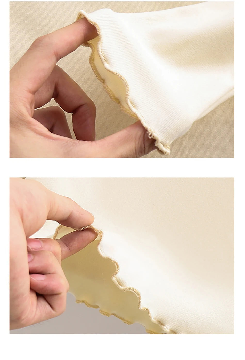 Autumn-Winter Girls Long Sleeve Solid Color T-Shirt with Ruffle Collar Girls Fashionable Comfortable Everyday Wear T-Shirt