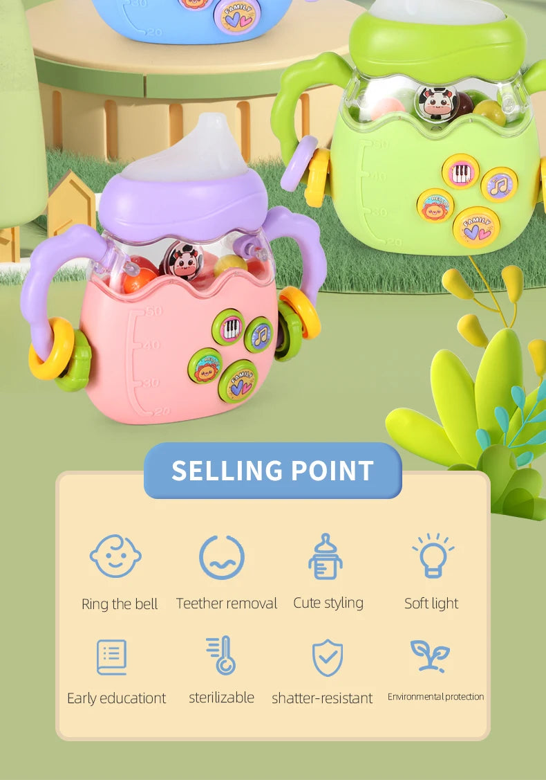 Baby bottle rattle puzzle early education toy Baby teaser pacifier Christmas gift Newborn grip Training Music story