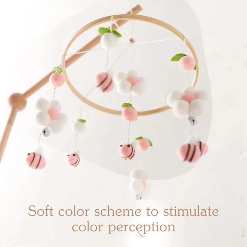 Baby Crib Bed Bell Rattle Toy 0-12 Months Wooden Mobile Cartoon Bee Bed Bell Hanging Toy Holder Bracket Infant Crib Bracket Gift