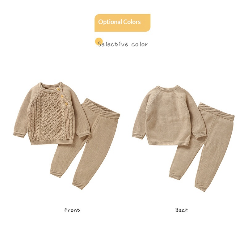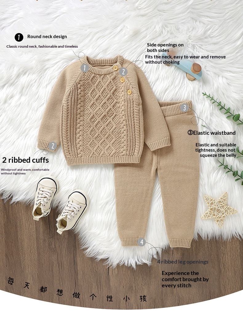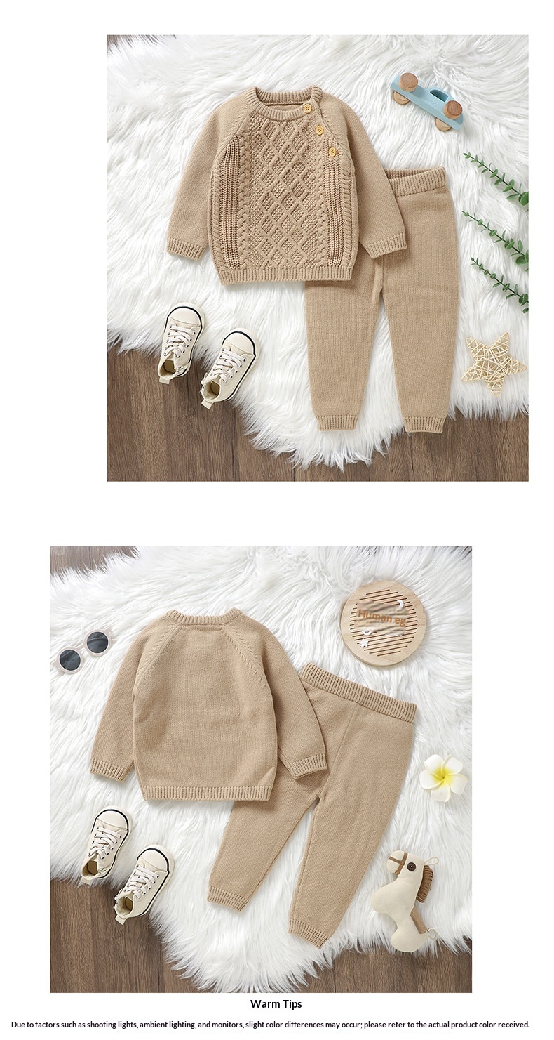 Baby Knitted Solid-Color Diamond-Shape Top Pants Set
