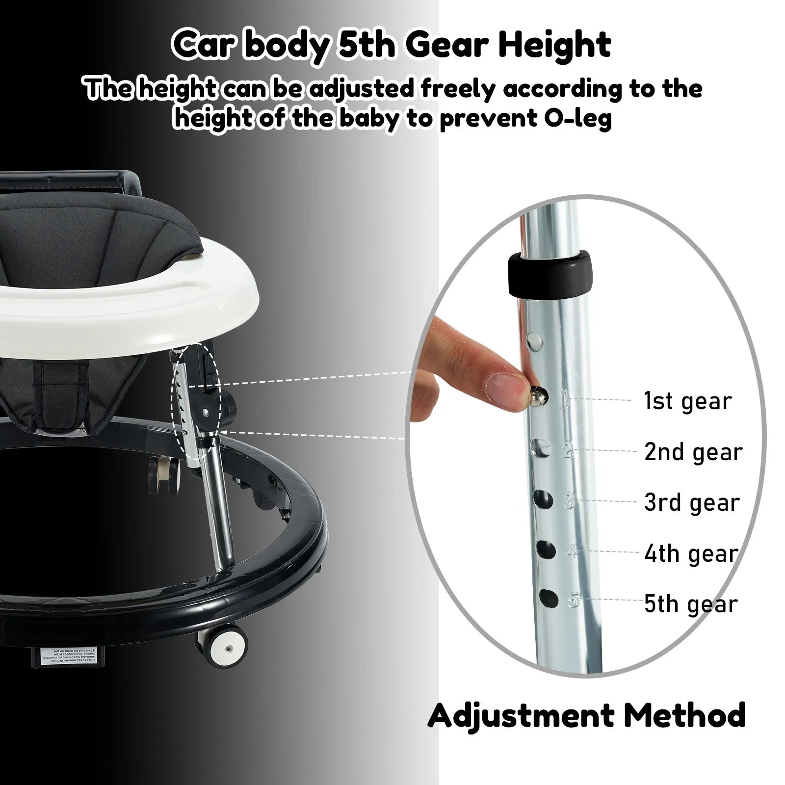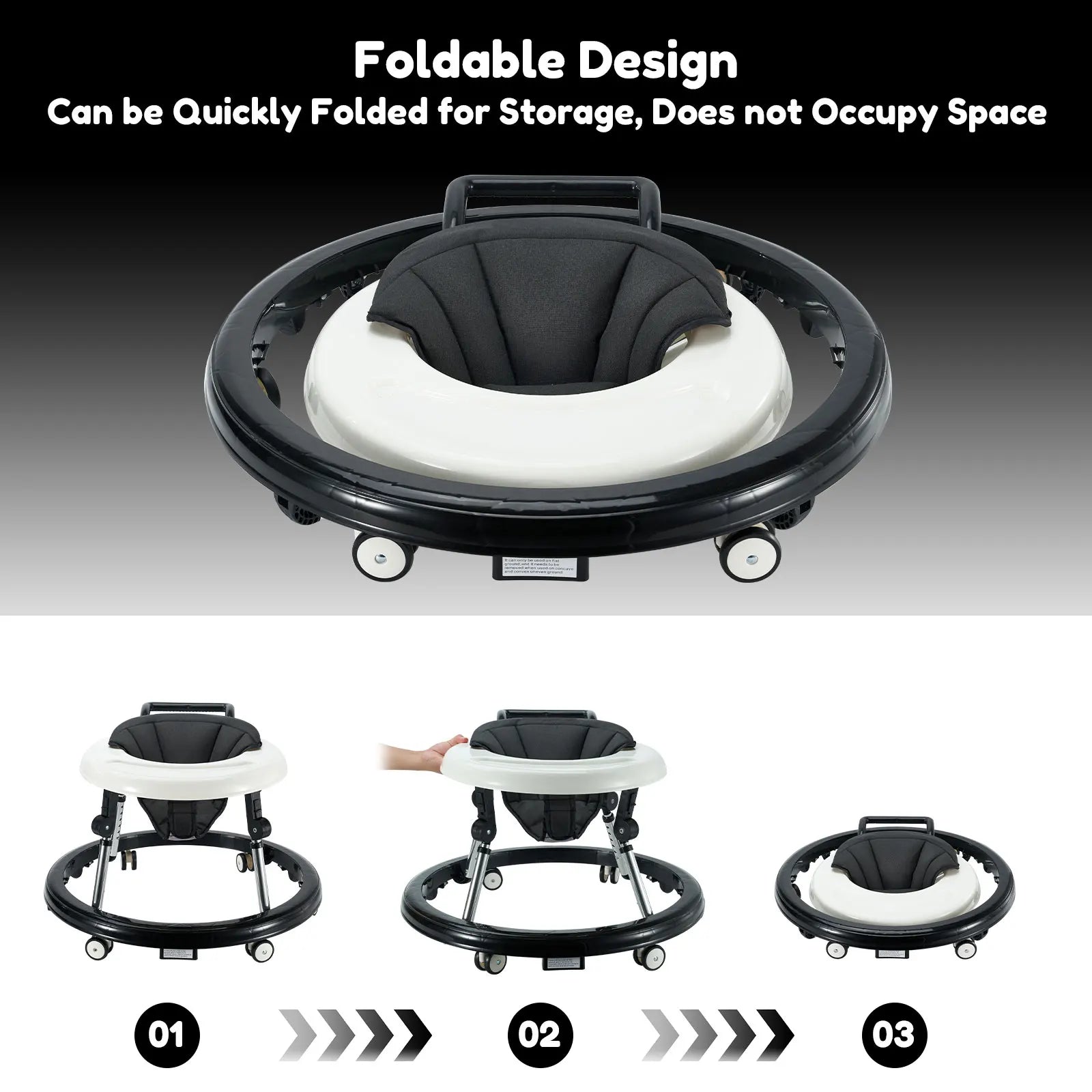 Baby Walker Foldable with 5 Adjustable Heights, Baby Walkers and Activity Center for Boys Girls Babies 7-18 Months, Baby Walker