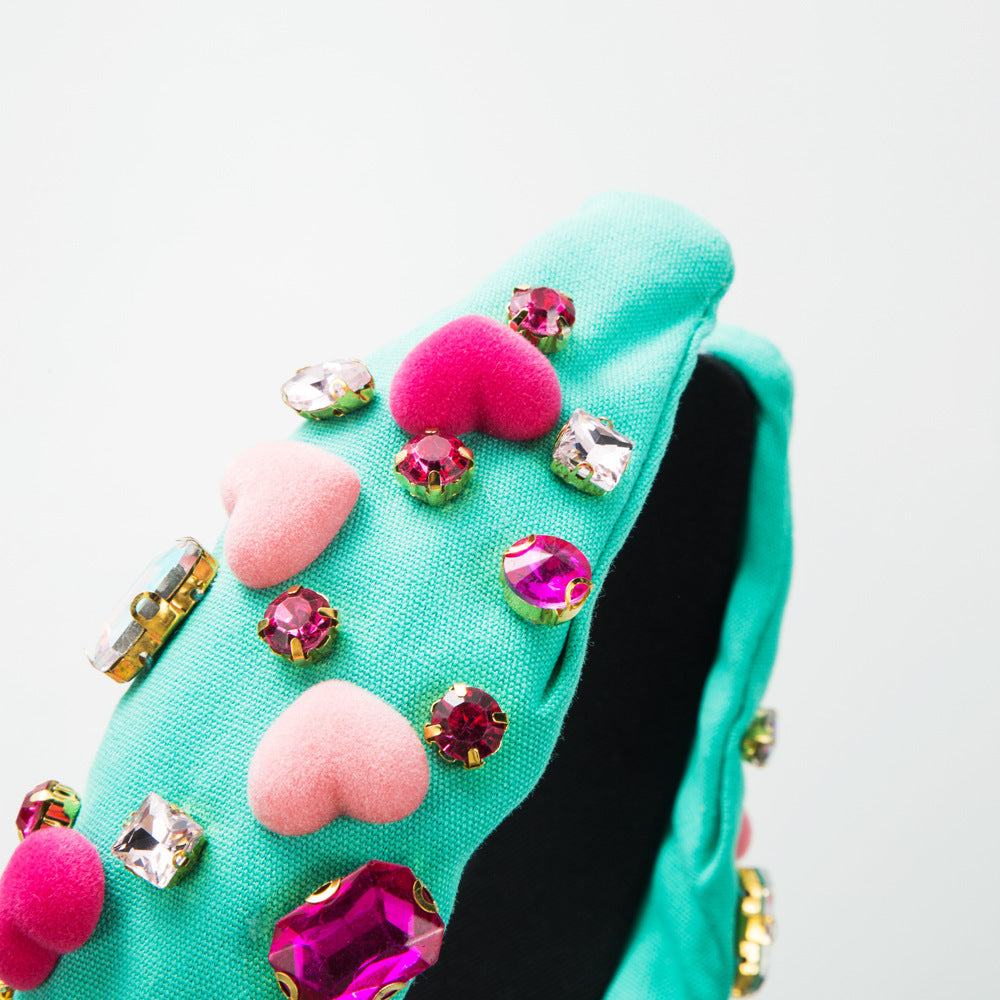 Baroque Valentine's Day Headband Female Hand-stitched Glass Charms Gemstones Sequins With Love