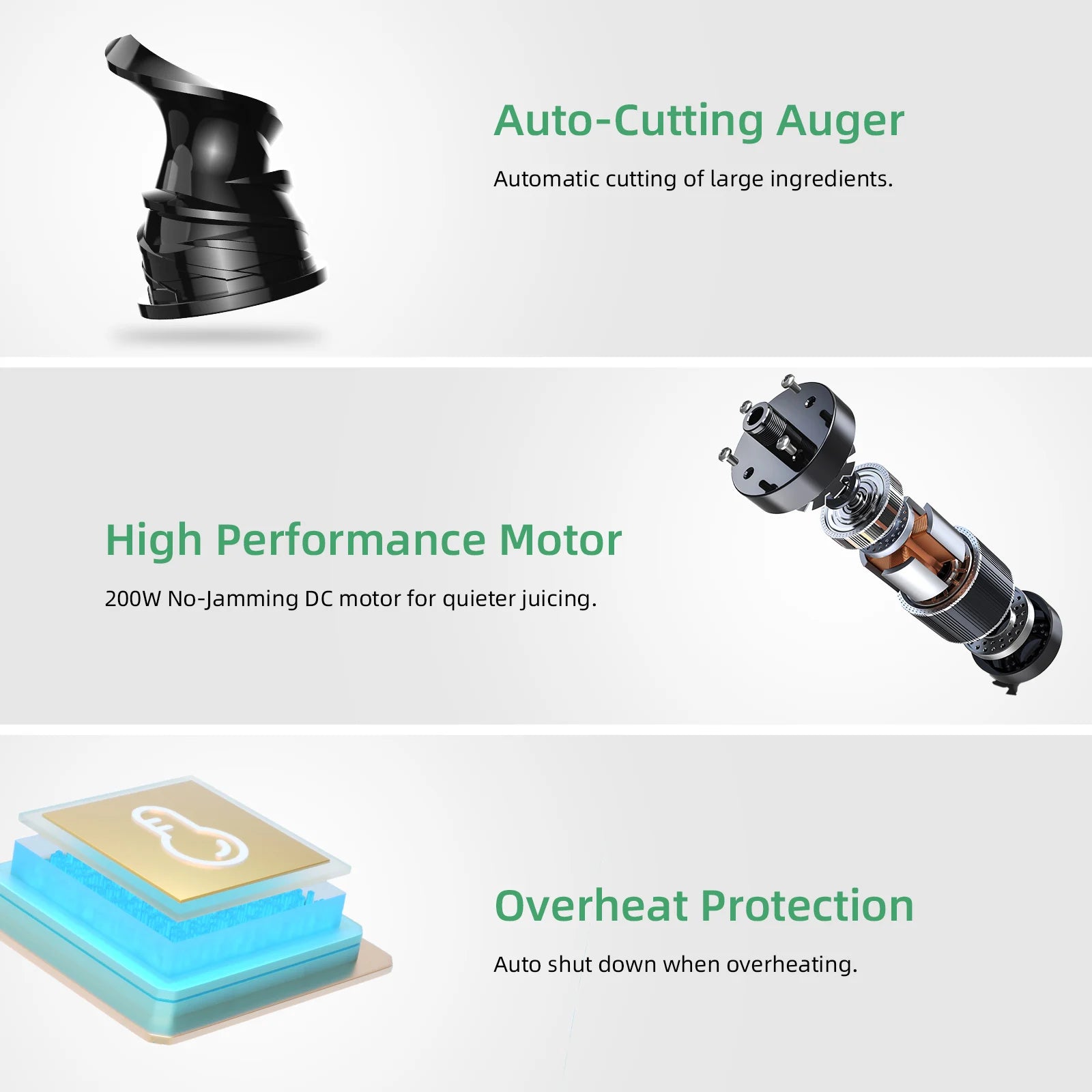 BioloMix Cold Press Juicer with 78mm Feed Chute, 200W 40-65RPM Powerful Motor Slow Masticating Juice Extractor Fits Whole Fruits