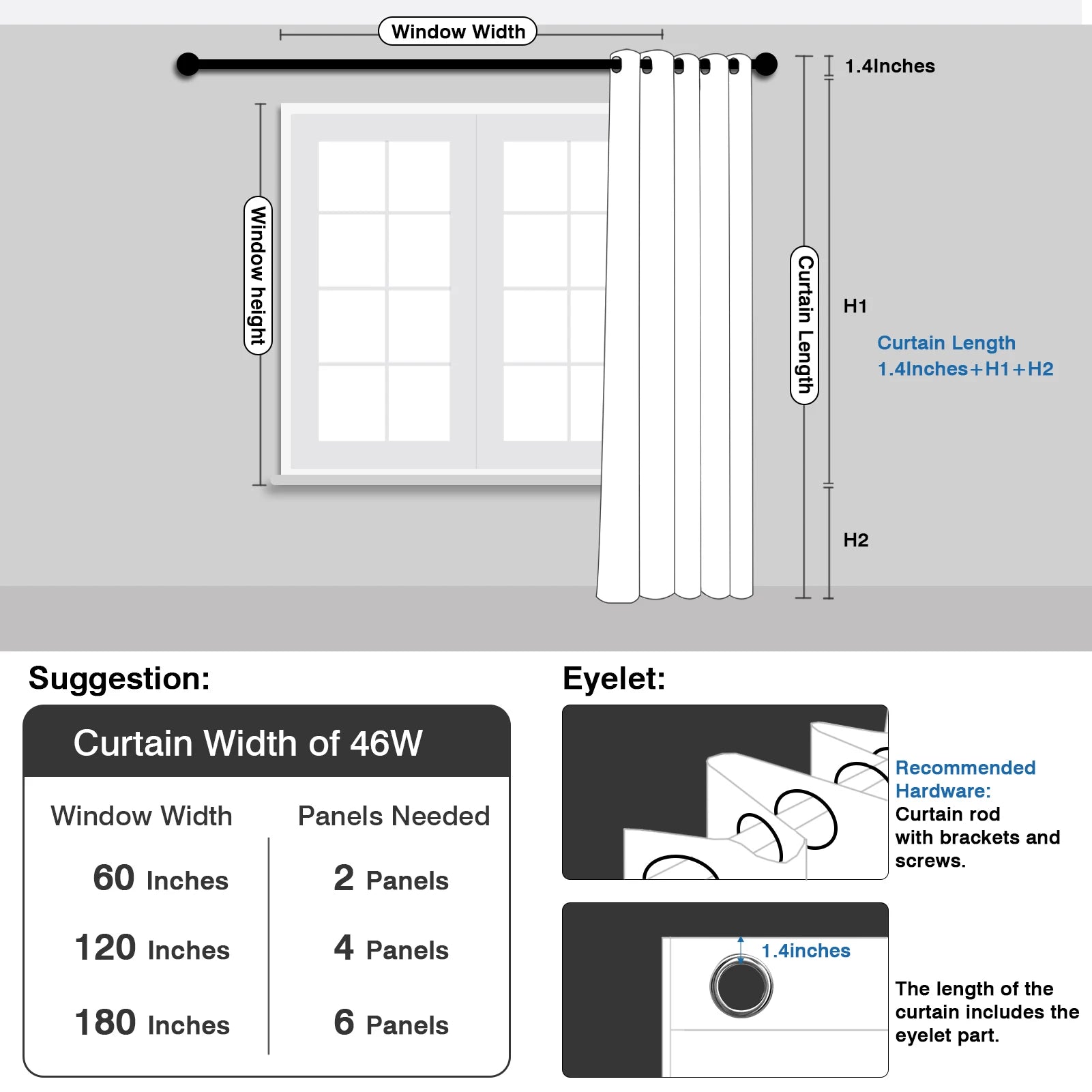 Blackout Curtains 2 Panels Thermal Insulated Grommet Darkening Drapes Solid Black Long Curtain for Bedroom Window Living Room