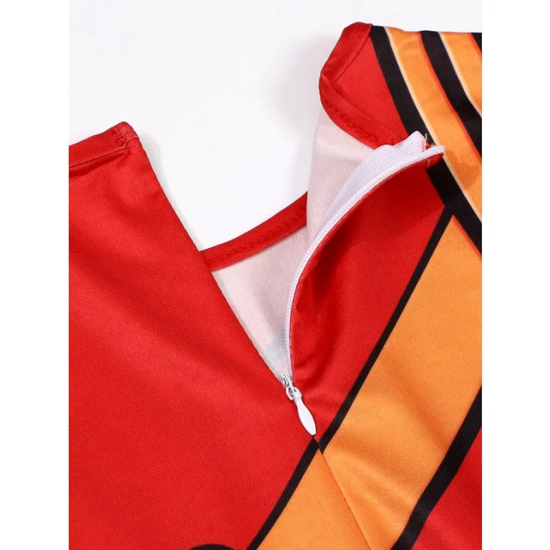 Boys Japanese Ninja Costume with Cartoon Anime Print Red Jumpsuit, Mask and Ninja Fork Accessory Set Halloween Dress Up Party