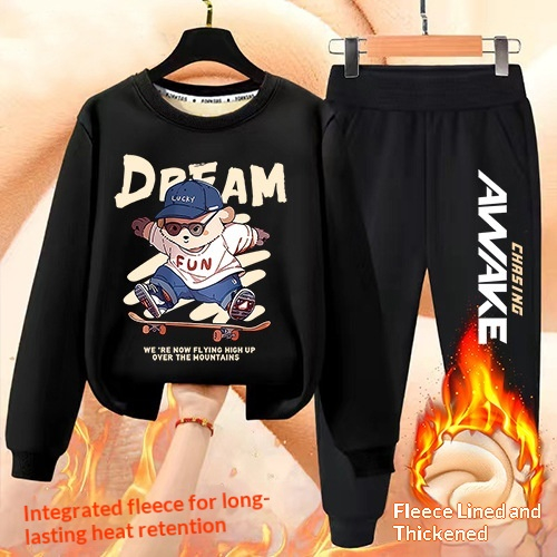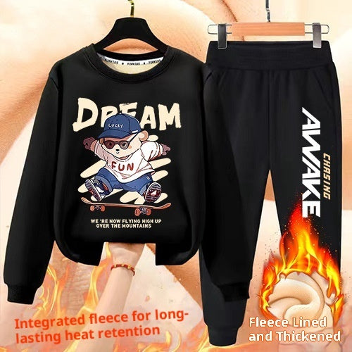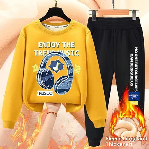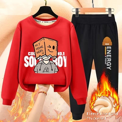 Boys' Winter Casual All-Match Fleece-Lined Thickened Outfit