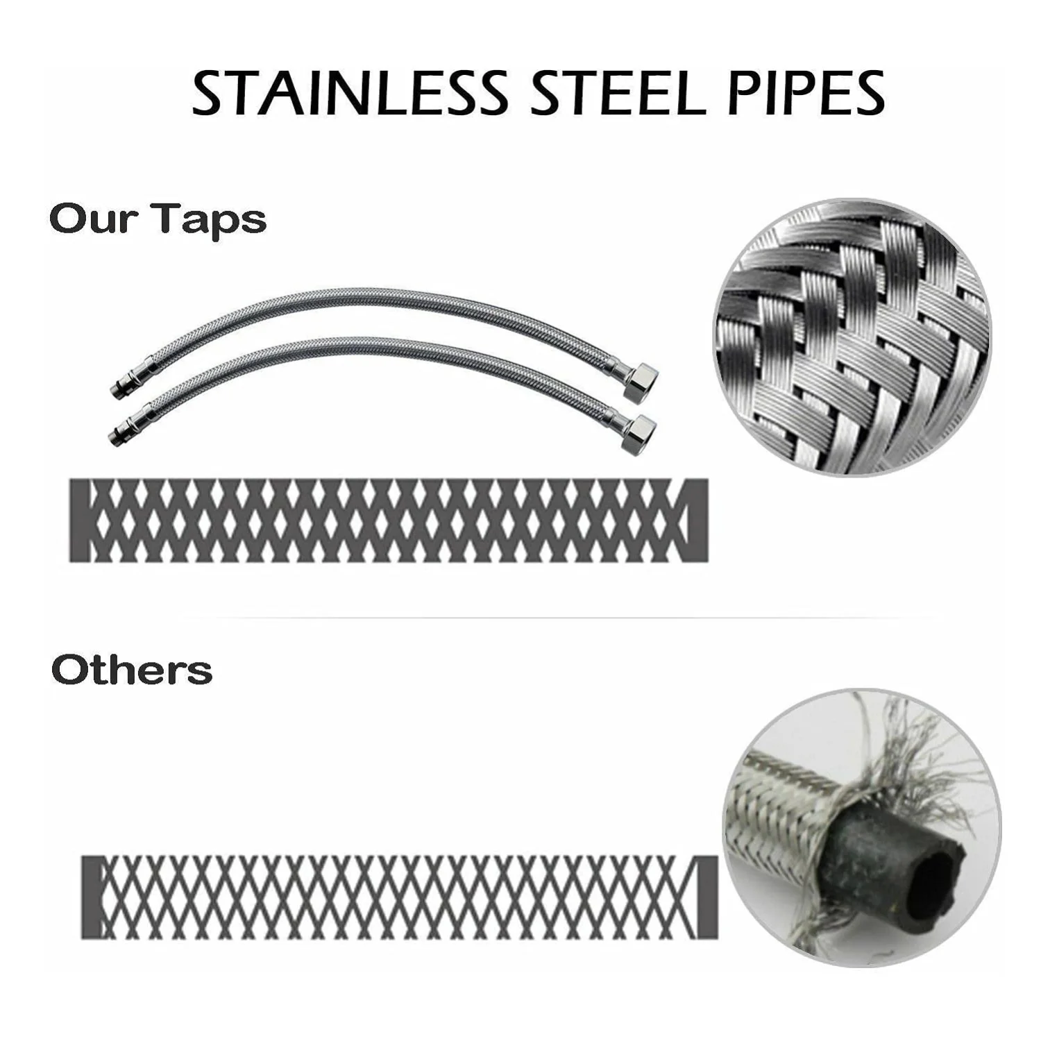 🚿【High Quality Material】 :This monobloc tap has a heavyweight brass body, which gives it strength and durability, with a shiny chrome finish.360° Swivel spout,Adjustable out water button.