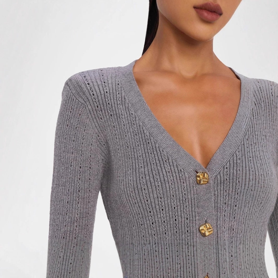 Button Ruffled Bell Sleeve Slim Fit Waist-controlled Slimming Top