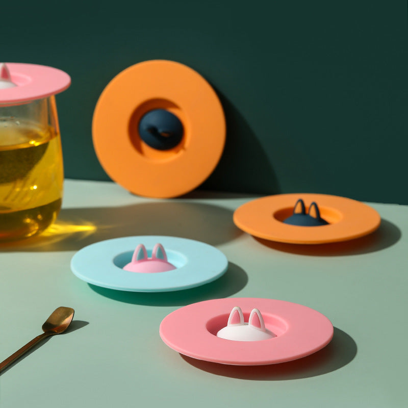 Cartoon Cute Cat Ear Silicone Sealing Lid Leakproof Dustproof Cup Lid Household Tea Mug Cup Bowl Lid Sealing Cover Keep