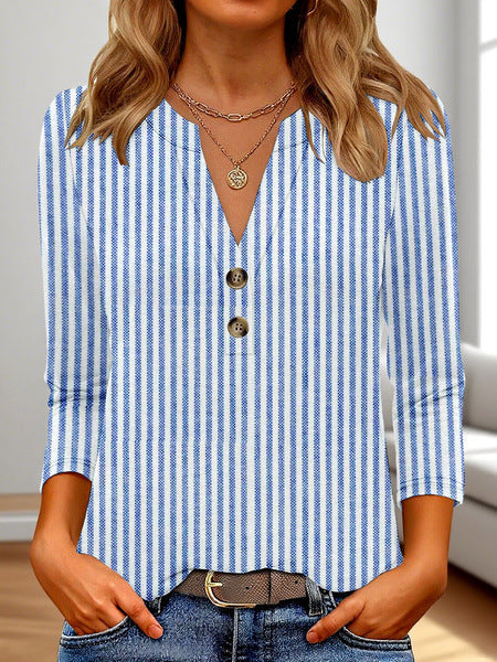 Casual Printed V-neck Top T-shirt Women's Clothing
