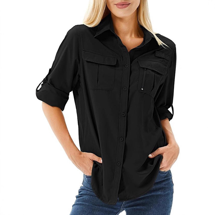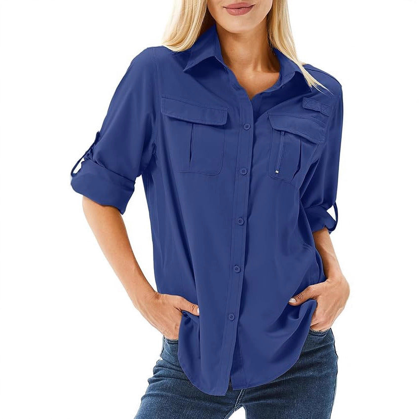 Casual Quick-drying Stretch Zipper And Lapel Pocket Women's Shirt