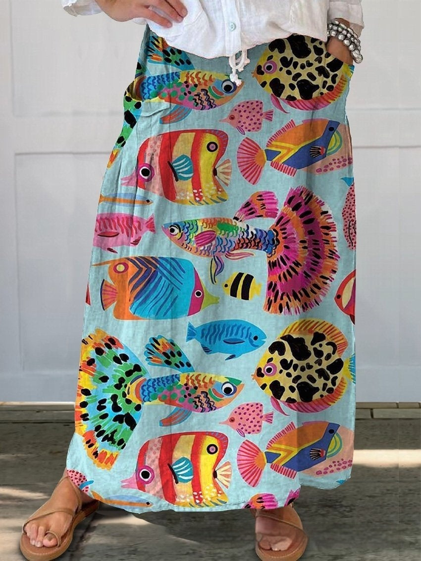 Casual Temperament Commute Floral Stripe Women's Skirt