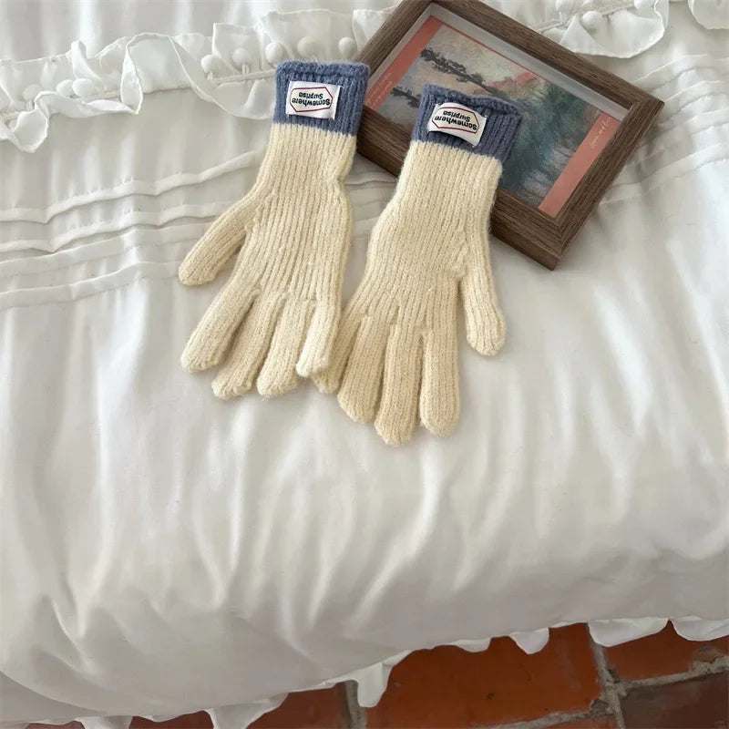 Children Thermal Knitted Gloves Winter Labeled Thickened Warm Gloves Touch Screen Striped Finger Unisex Mittens
