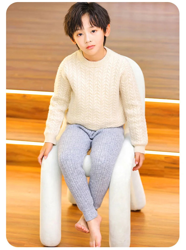 Premium 100% Merino Wool Thermal Leggings for Kids - Warm Winter Base Layer Pants for Boys & Girls
