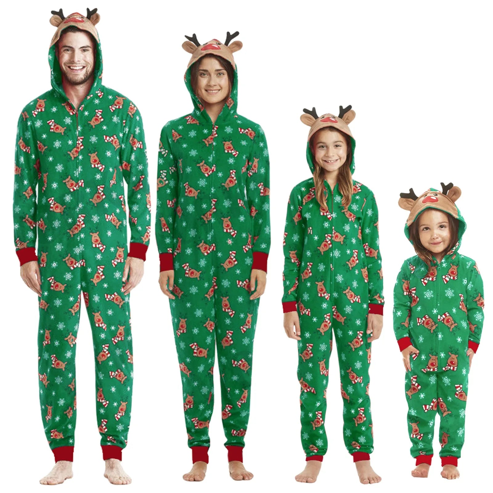 Christmas Family Matching Onesie - Elk Print Hooded Jumpsuit Pyjamas for Mom Dad Kids