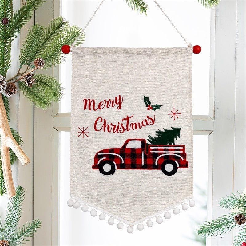 Color: TW2166019R-A red and black plaid tree flag, TW2166019R-B red and black plaid sack flag, TW2166026R Christmas flag, TW2166027R Christmas black dog flag, TW2166025R Christmas elk flag, TW2166021R-B Christmas car flag, TW2166021R-A Christmas Plaid tree flag
