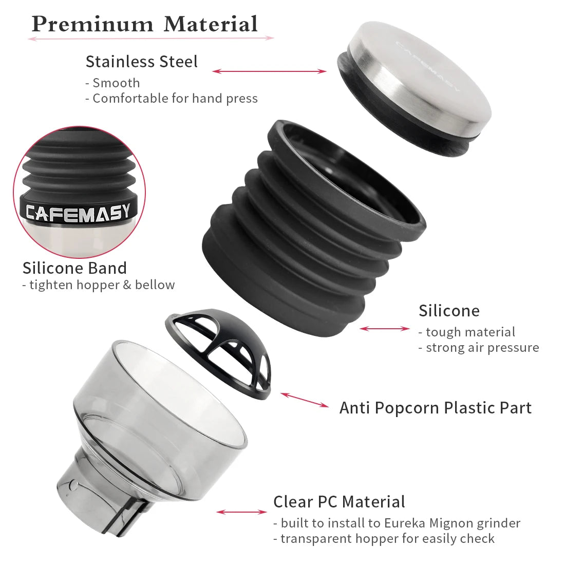 Coffee Beans Grinder Single Dose Hopper and Bellows Coffee Grinder Bean Bin Blowing Cleaning Tool For Eureka Mignon Grinder