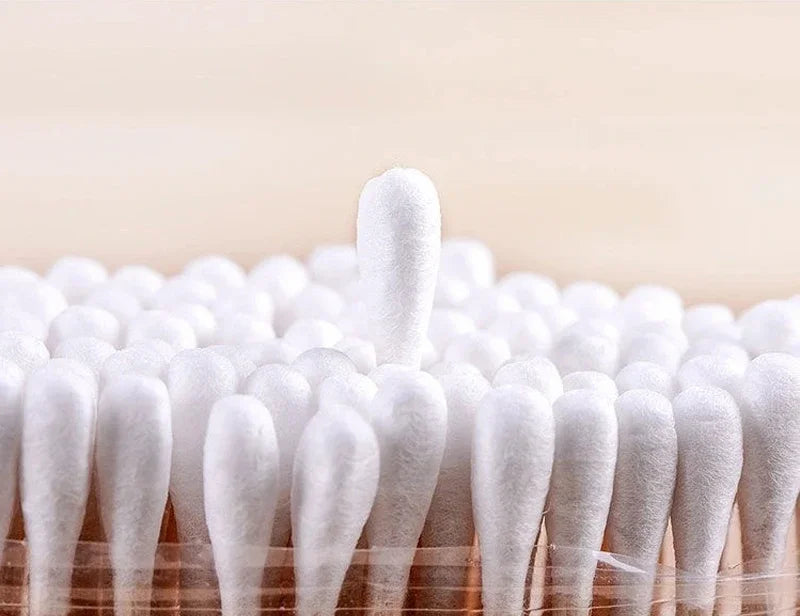 Cotton Swab Storage Box Double Head Cotton Buds Container Transparent Square Bamboo Cover Cotton Swab Toothpick Organize Box