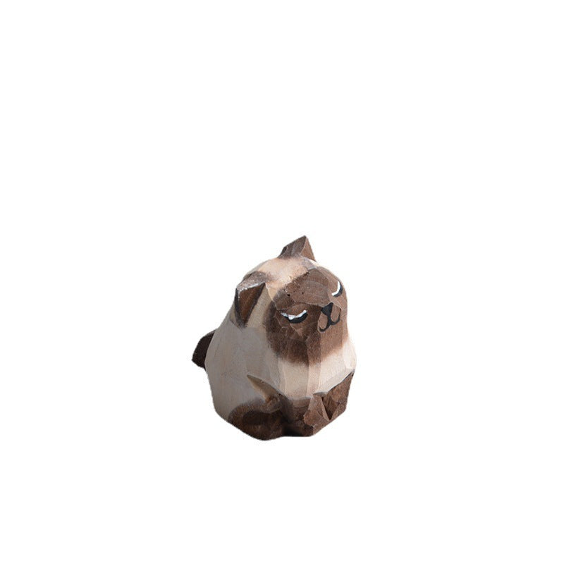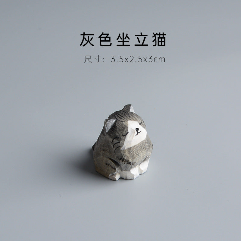 Handmade Wooden Cat Figurine - Artisan Carved Wood Cat Sculpture Home Decor Gift