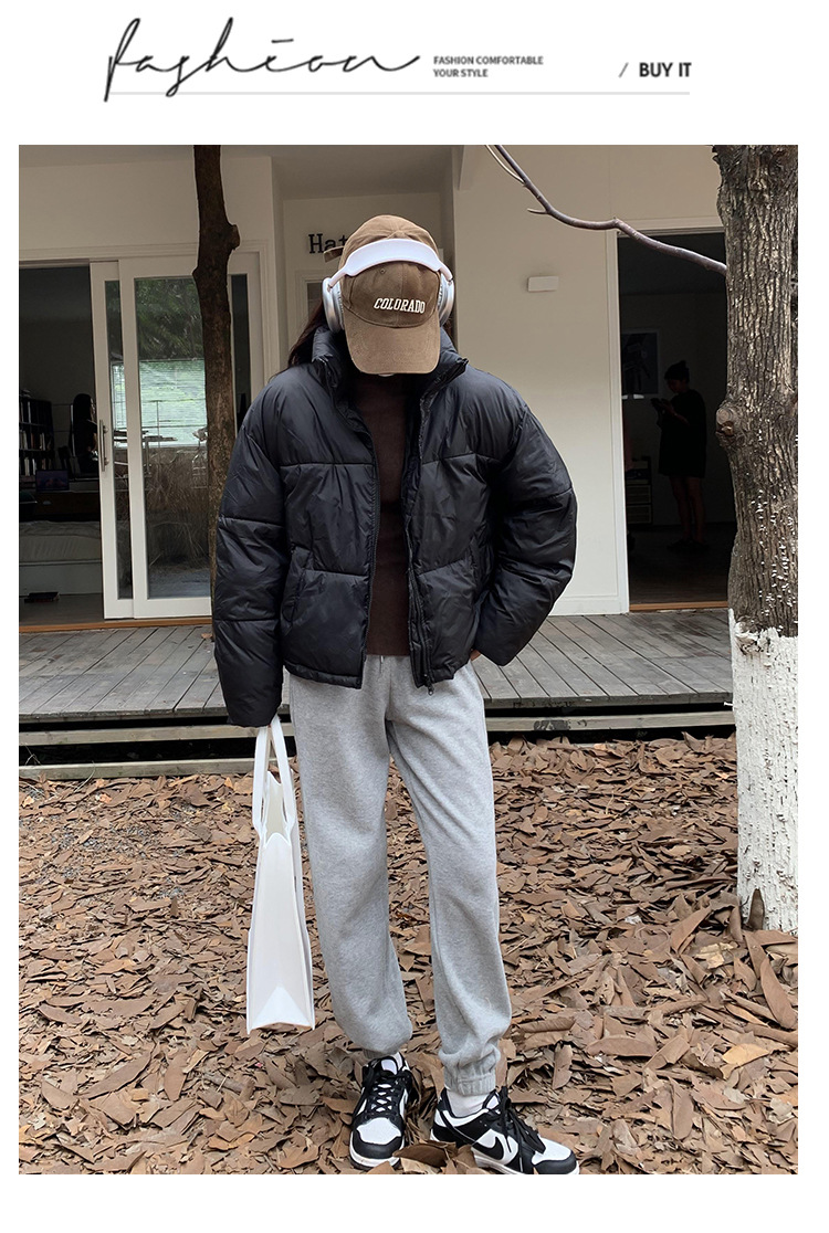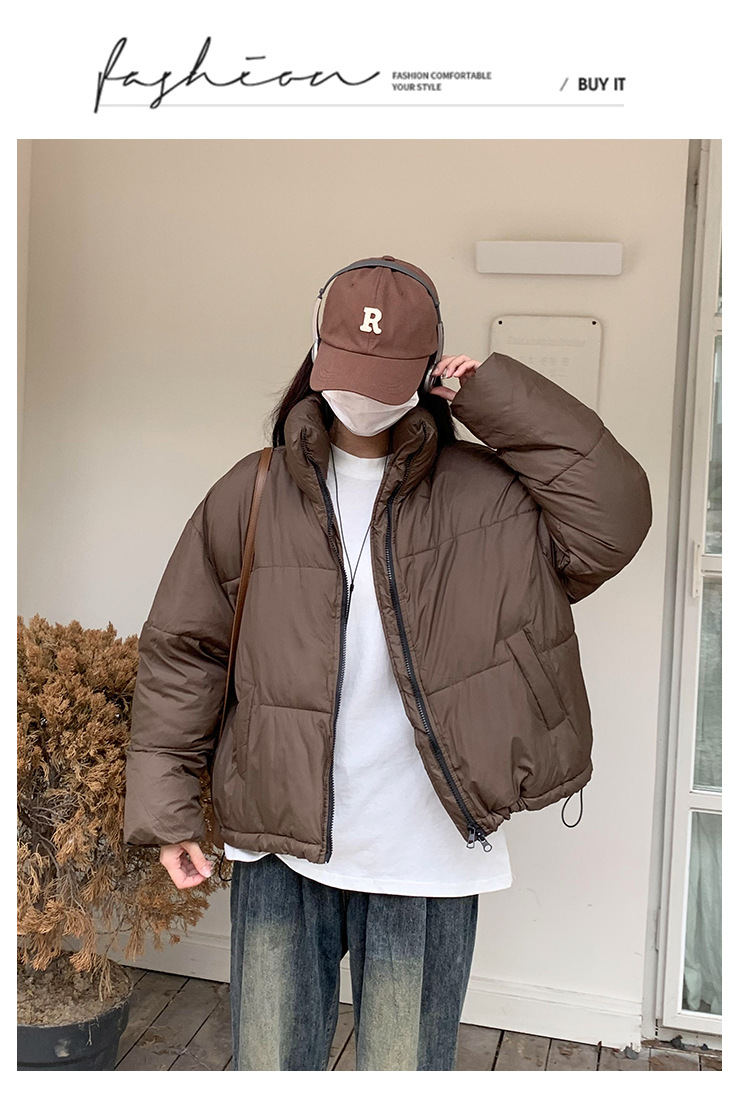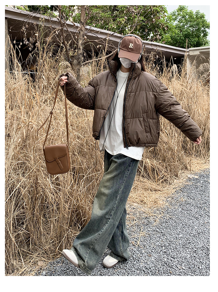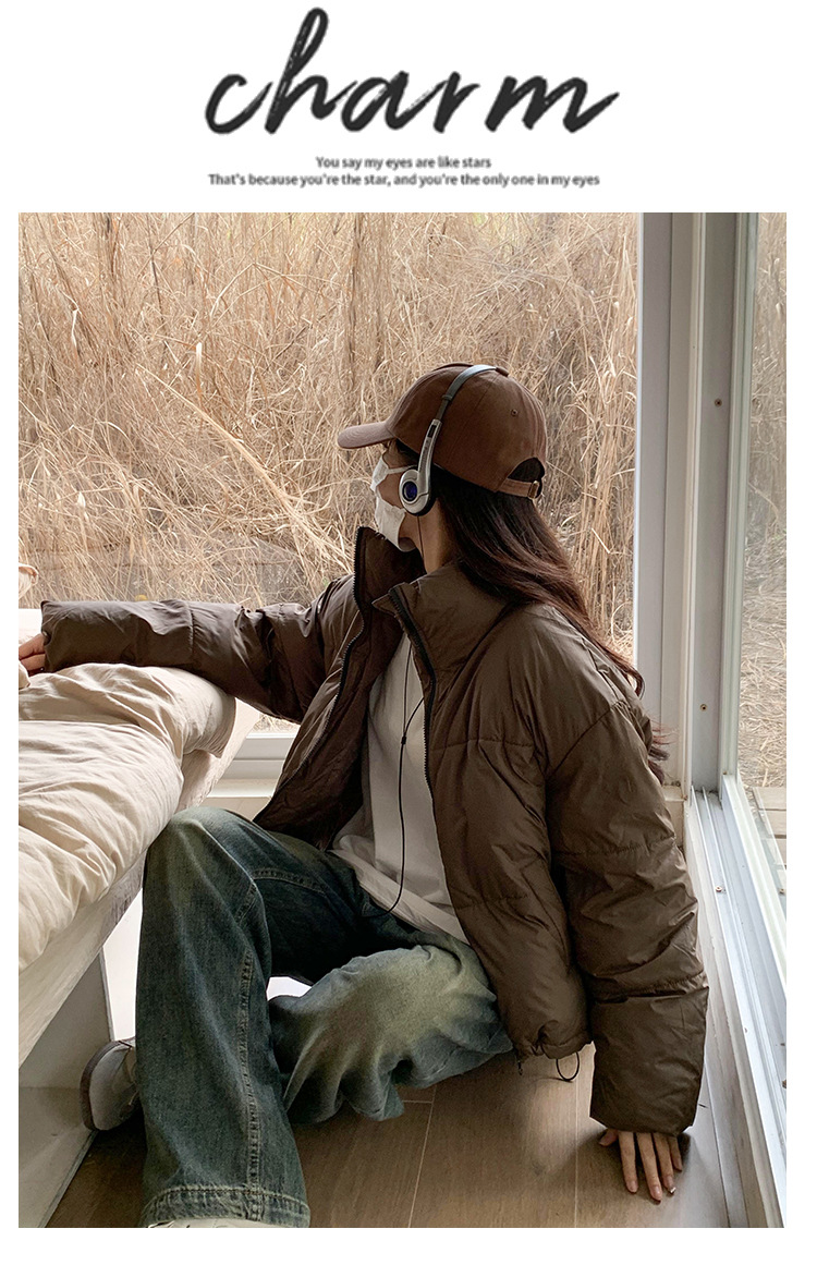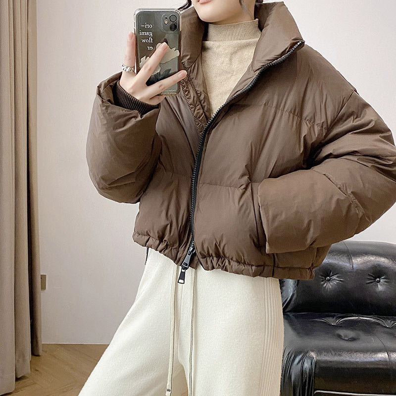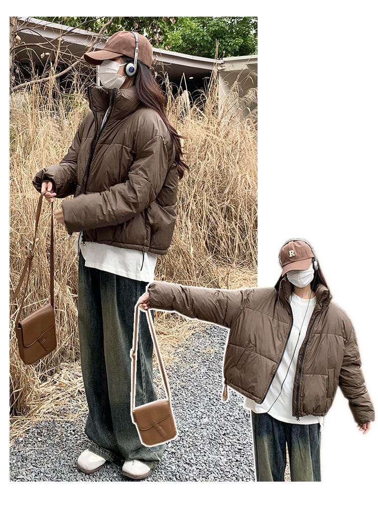 Cropped Cotton Puffer Jacket With A Stand-up Collar For Petite
