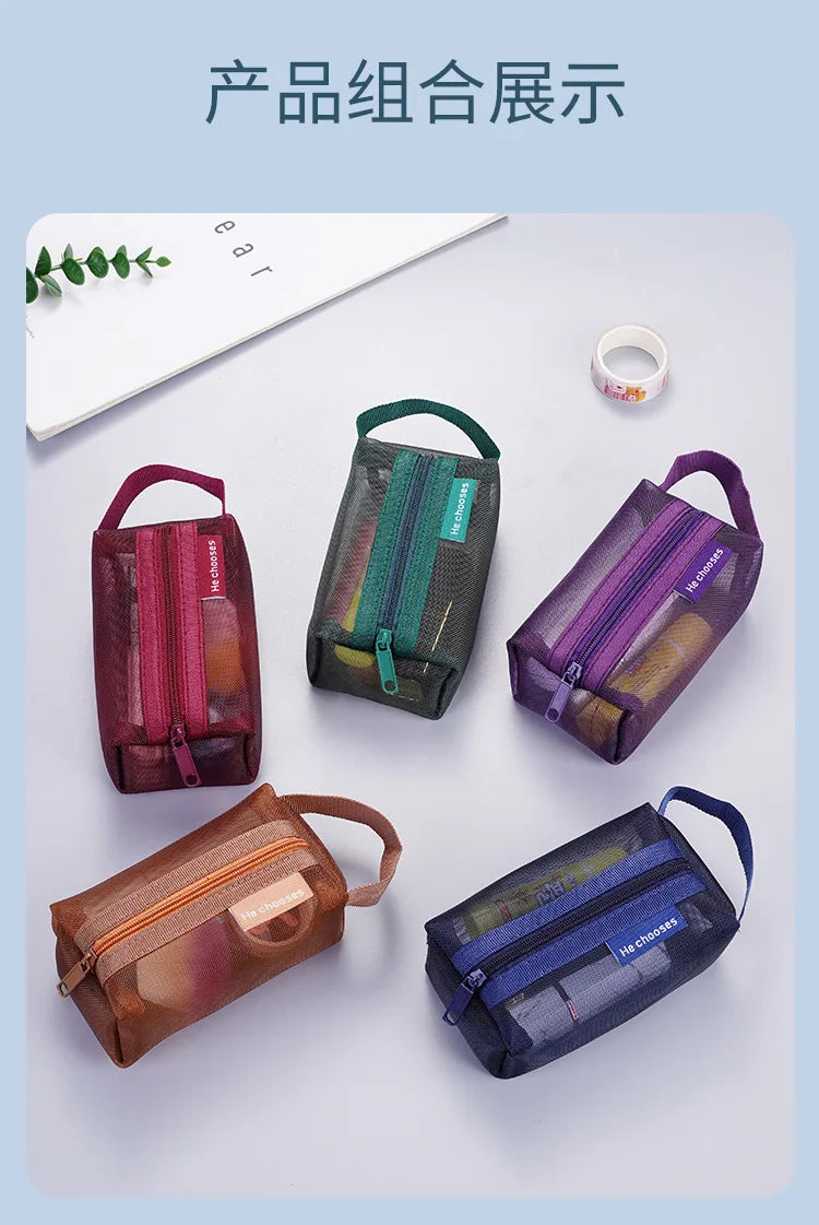 Dark Series Vintage Three-dimensional Square Nylon Mesh Coin Purse Pouch Large Capacity Key Lipstick Earphone Organizer Card Bag
