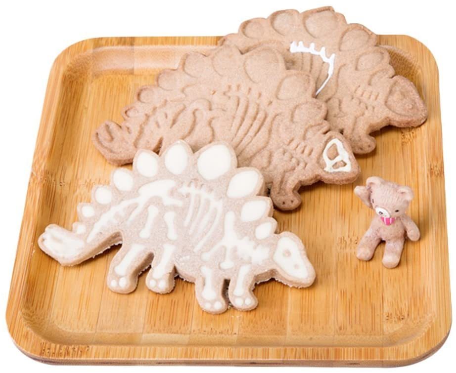 3 PIECES DINOSAUR FOSSIL CUTTER / STAMPERS: The dinosaur fossil cookie cutter include Stegosaurus & Tyrannosaurus Rex & Triceratops three style, look very funny. Children tend to be full of curiosity to new things, unique dinosaur cookies can recall the child's appetite. Let your children love the DIY cookies.