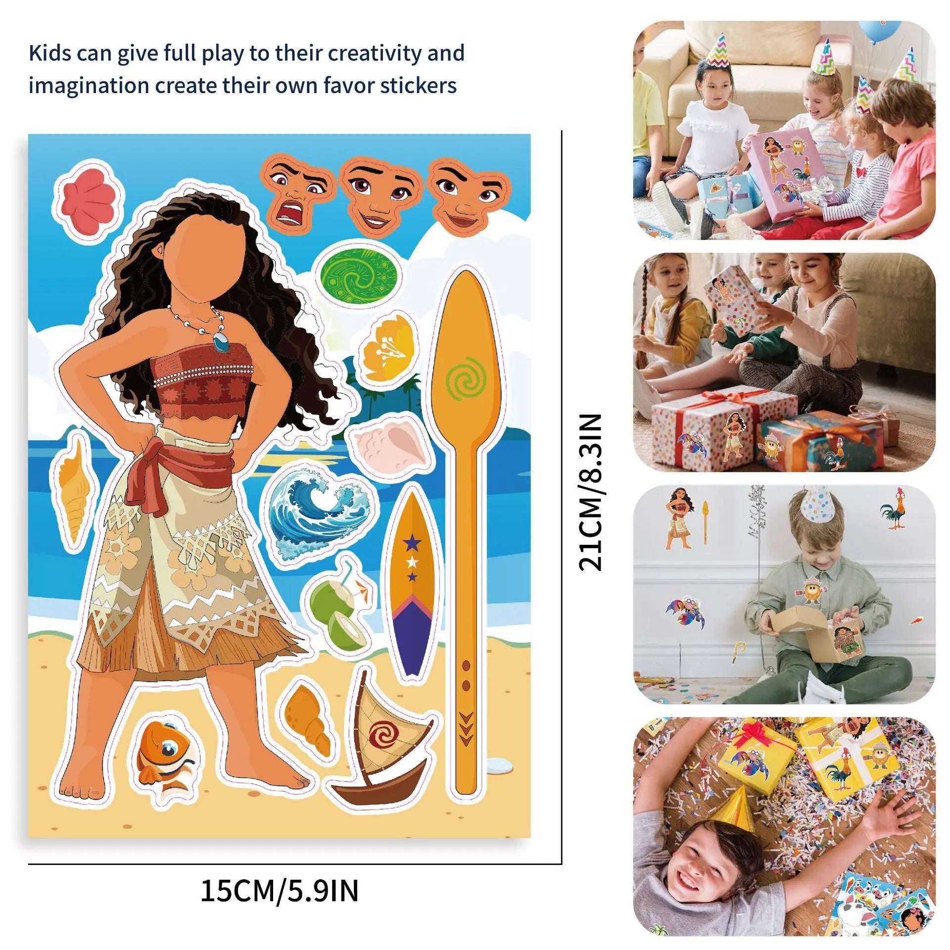 Disney Moana 2 Make a Face Puzzle Stickers Party Favors Gifts DIY Cartoon Sticker Goodie Bag Pinata Fillers Party Decoration