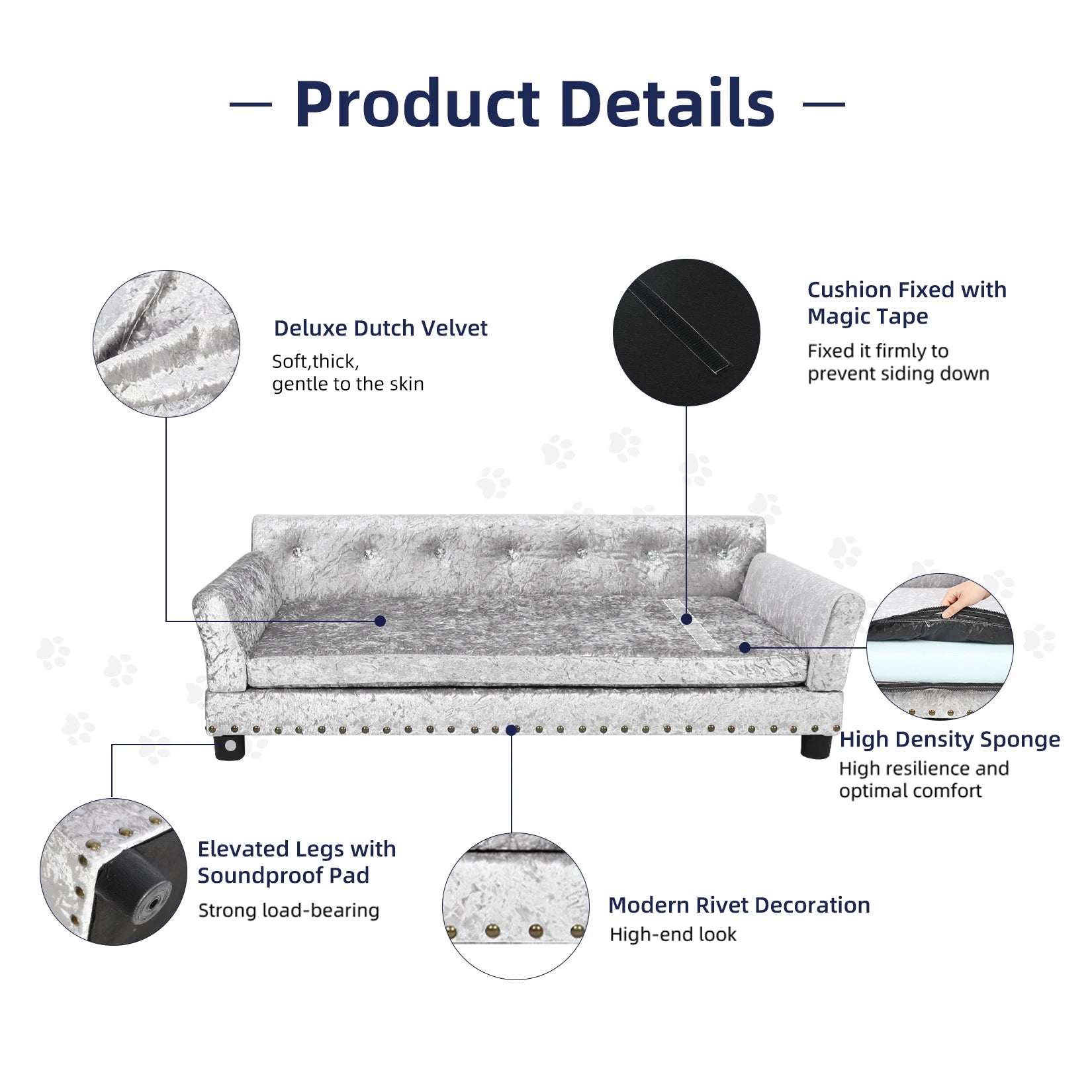 Dutch Velvet Upholstered Pet Lounge Chair, Dog Bed, Sofa, Couch Bed, Solid Wood Legs, Detachable Pad, Pet Supplies, L, XXL