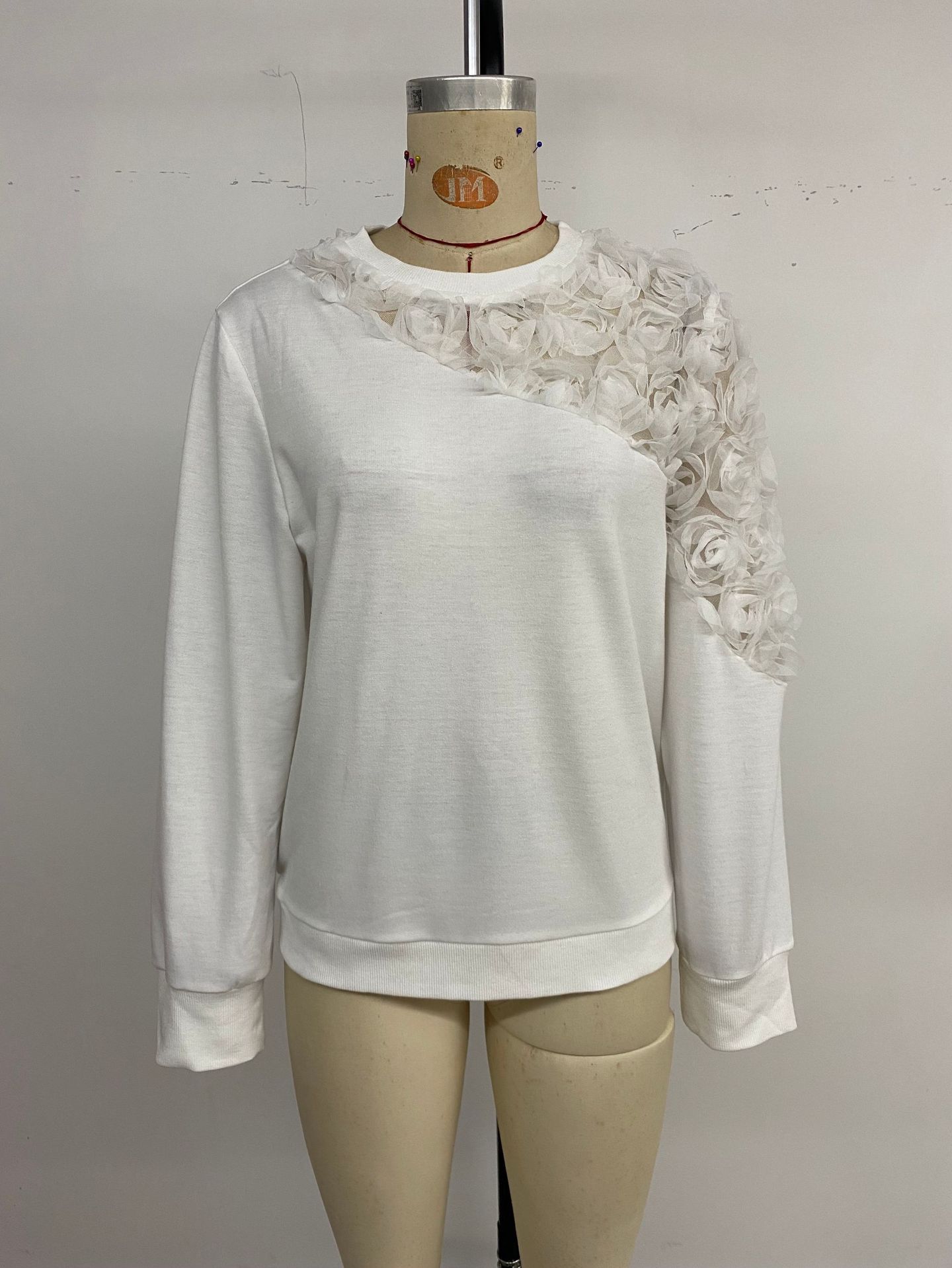 European And American Base Long Sleeve White Top