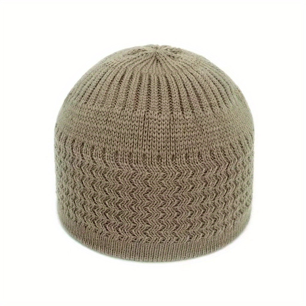 European And American Spring And Autumn Knitted Hat, Unisex Wavy Jacquard Unisex Dome Warm Beanie Cap, Muslim Pullover Knitted Hat, Ideal Choice For Gifts