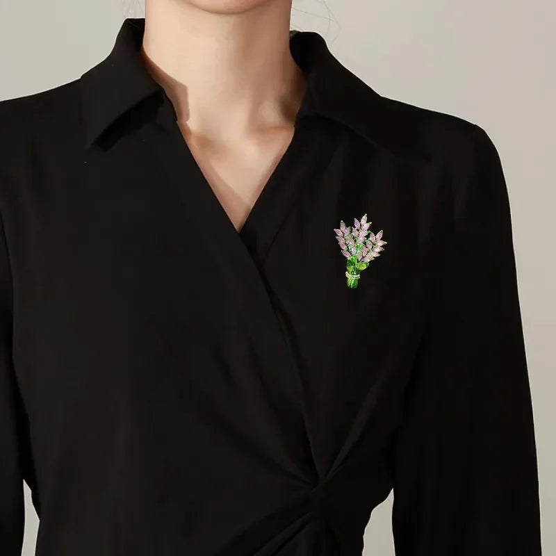 Exquisite Purple Lavender Brooch Women's Brooches Crystal Rhinestone Bouquet Pins Clothing Coat Luxury Jewelry Girl Gift