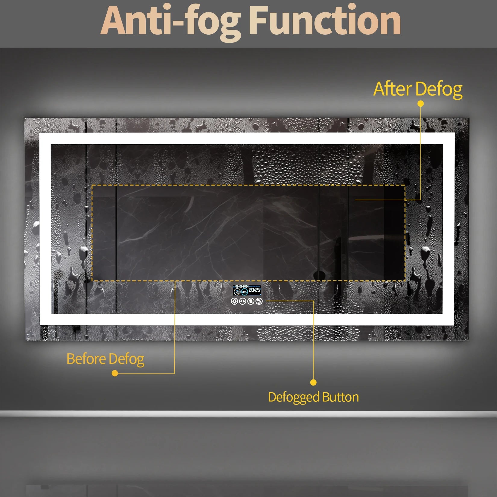 Extra Long Rectangle LED Bathroom Mirror with Bluetooth Speaker Front-lit and Backlight Vanity Mirror Smart Anti-fog