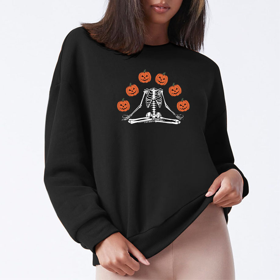 Female Wansheng Pumpkin Skull Printed Crew Neck Sweatshirt