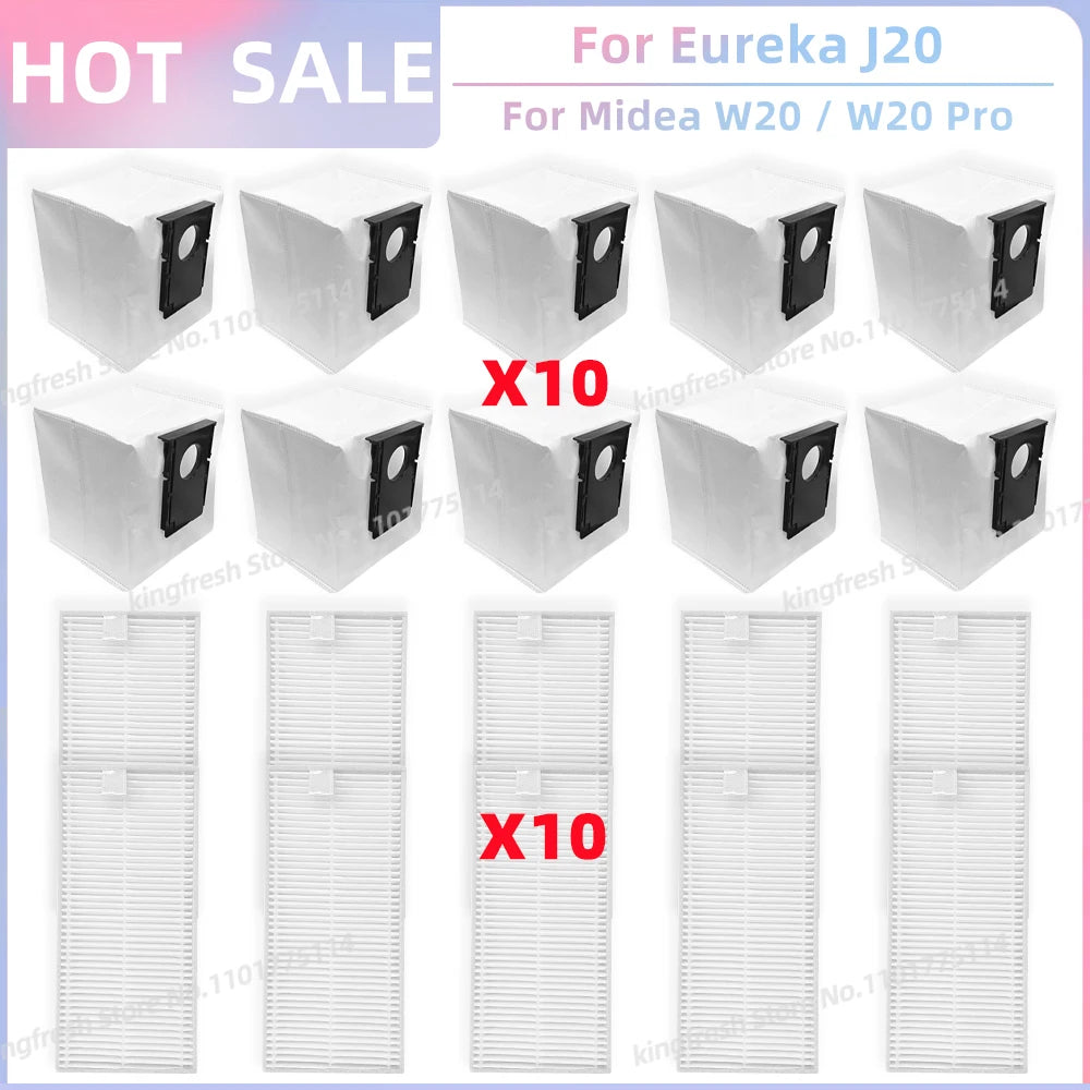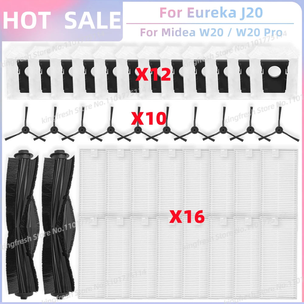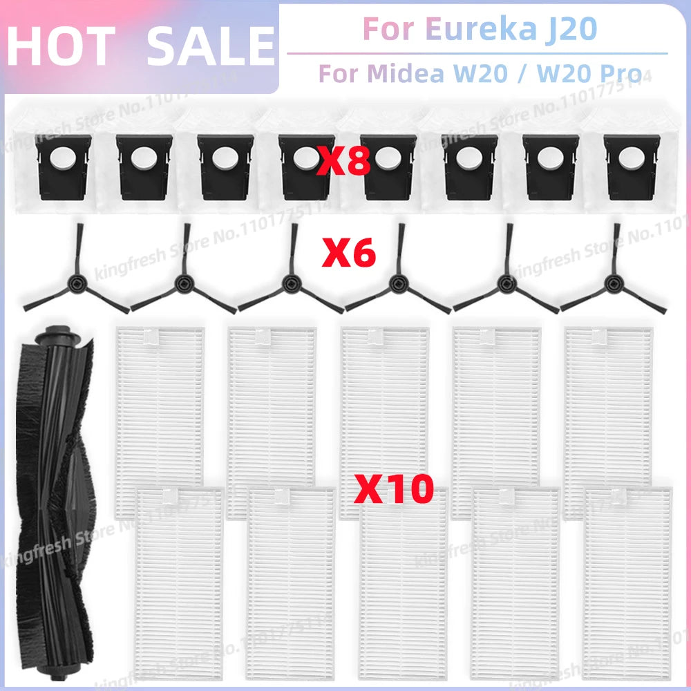 Fit For Eureka J20 / Midea W20 / W20 Pro Robot Vacuum Replacement Parts Main Roller Side Brush Hepa Filter Dust Bag Accessories