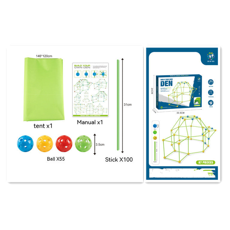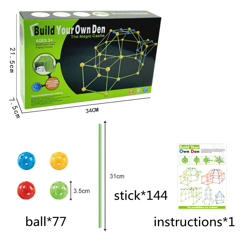 Luminous Children's Bead Tent1、Building Castle Building Set: Including 51 sticks, 36 balls/64 sticks, and 36 balls. The magic-making set allows your children to build castles of various shapes and sizes!