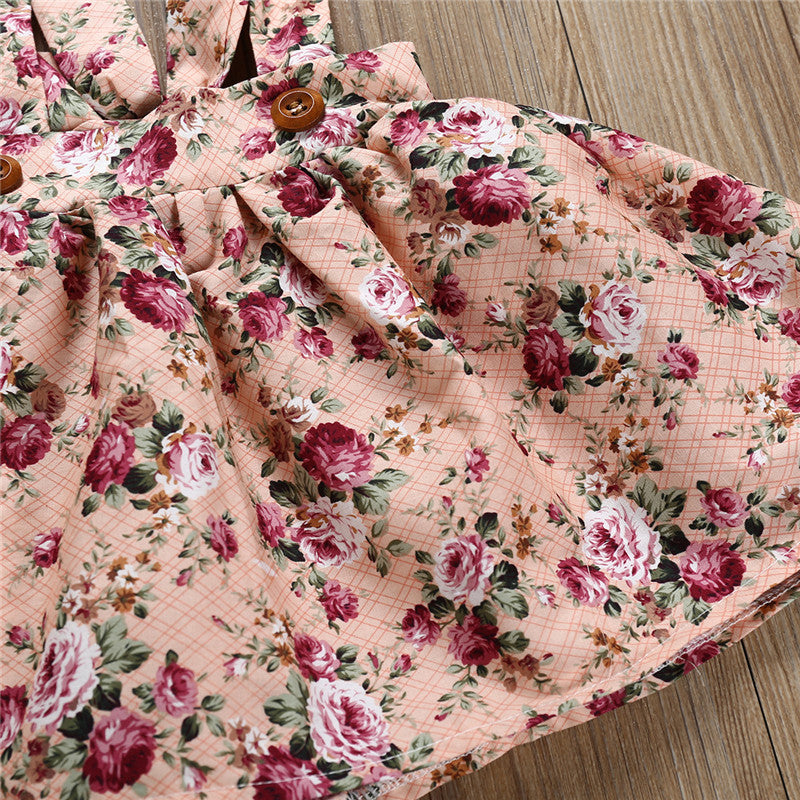 Short-sleeved Romper + Flower Strap Skirt + Head Knot*1