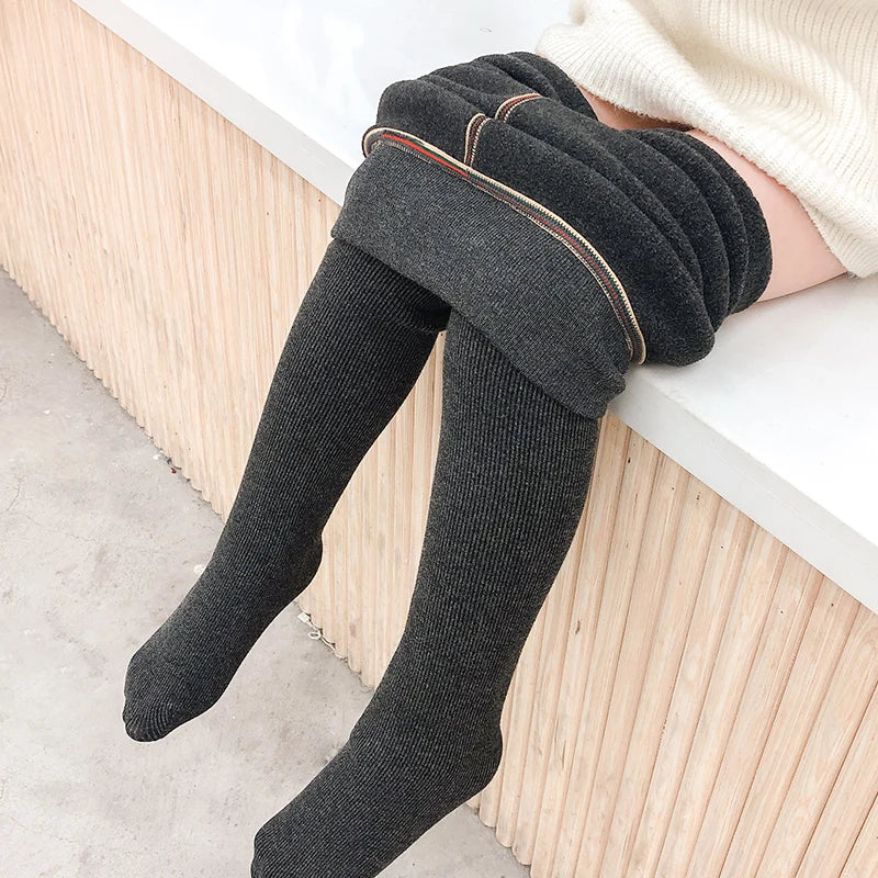 Girls winter plus velvet extra thick pantyhose child strips warm pants Polar Fleece Lining kids baby leggings cotton stockings