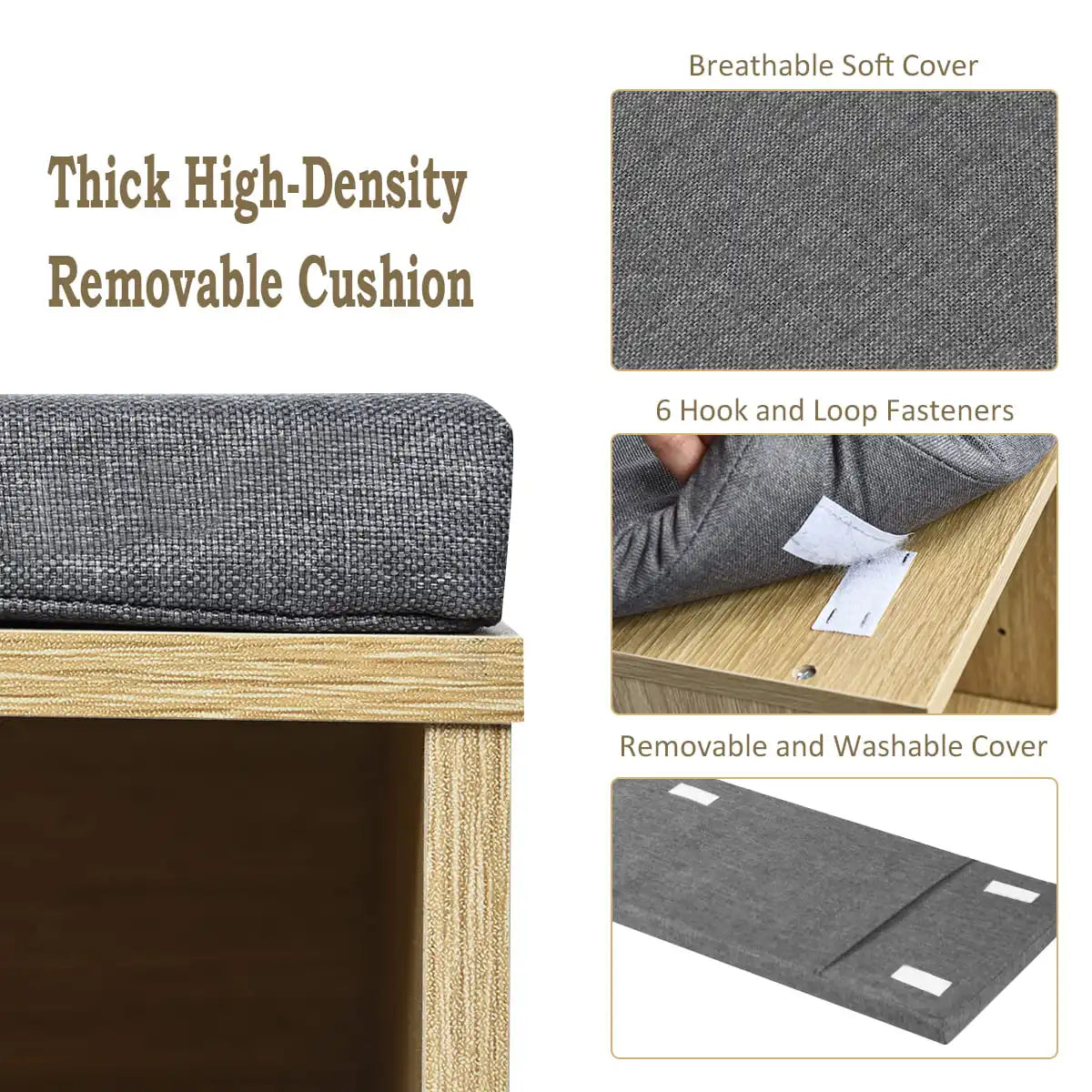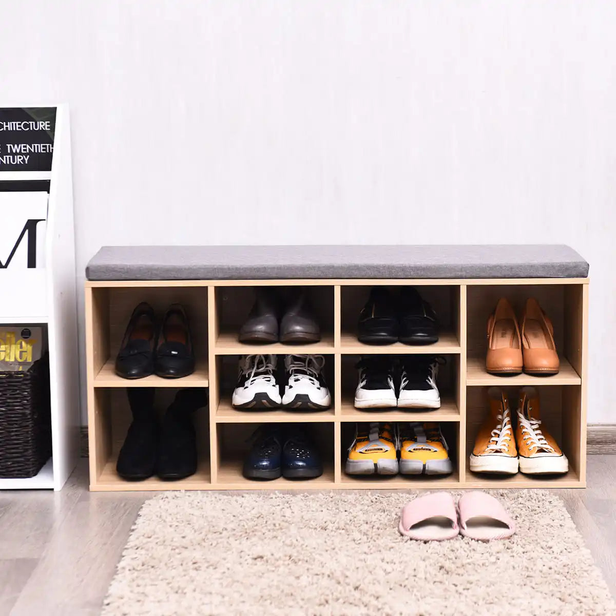 GOFLAME Wooden Shoe Bench Shoe Storage Rack Cabinet Organizer Seat Cushion-Natural