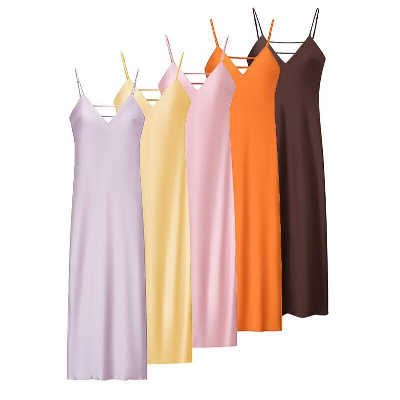 Golden Holiday Party Dress Silk Satin Texture Midi Skirt Sling Dress