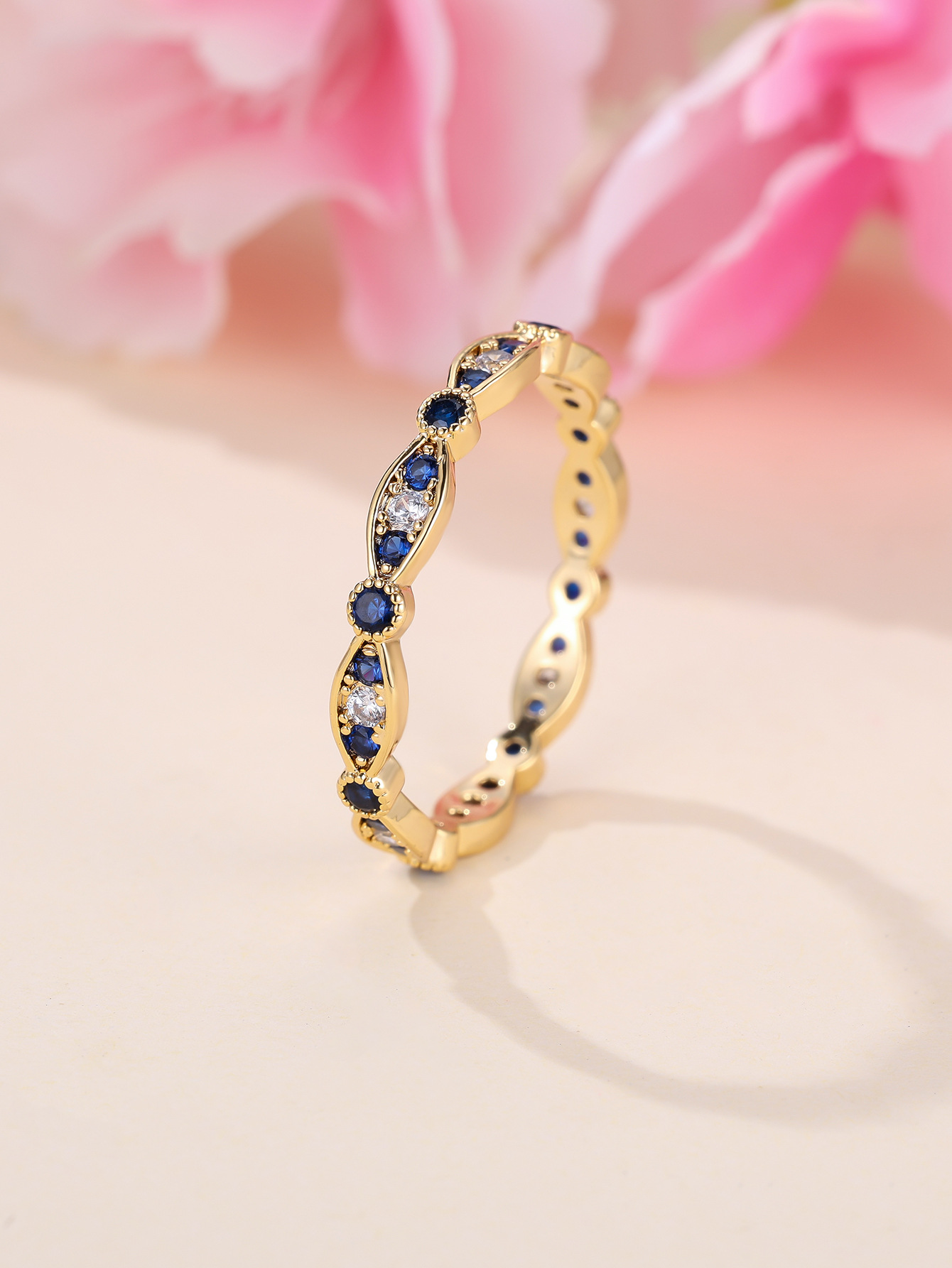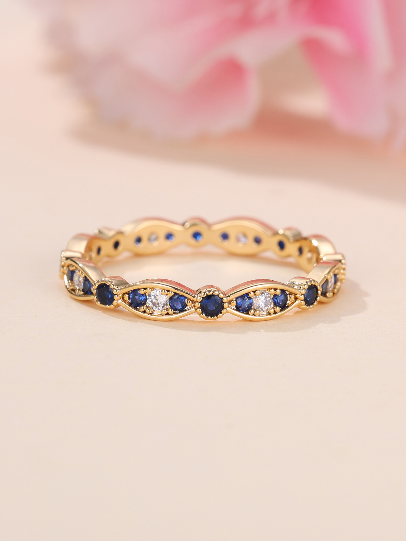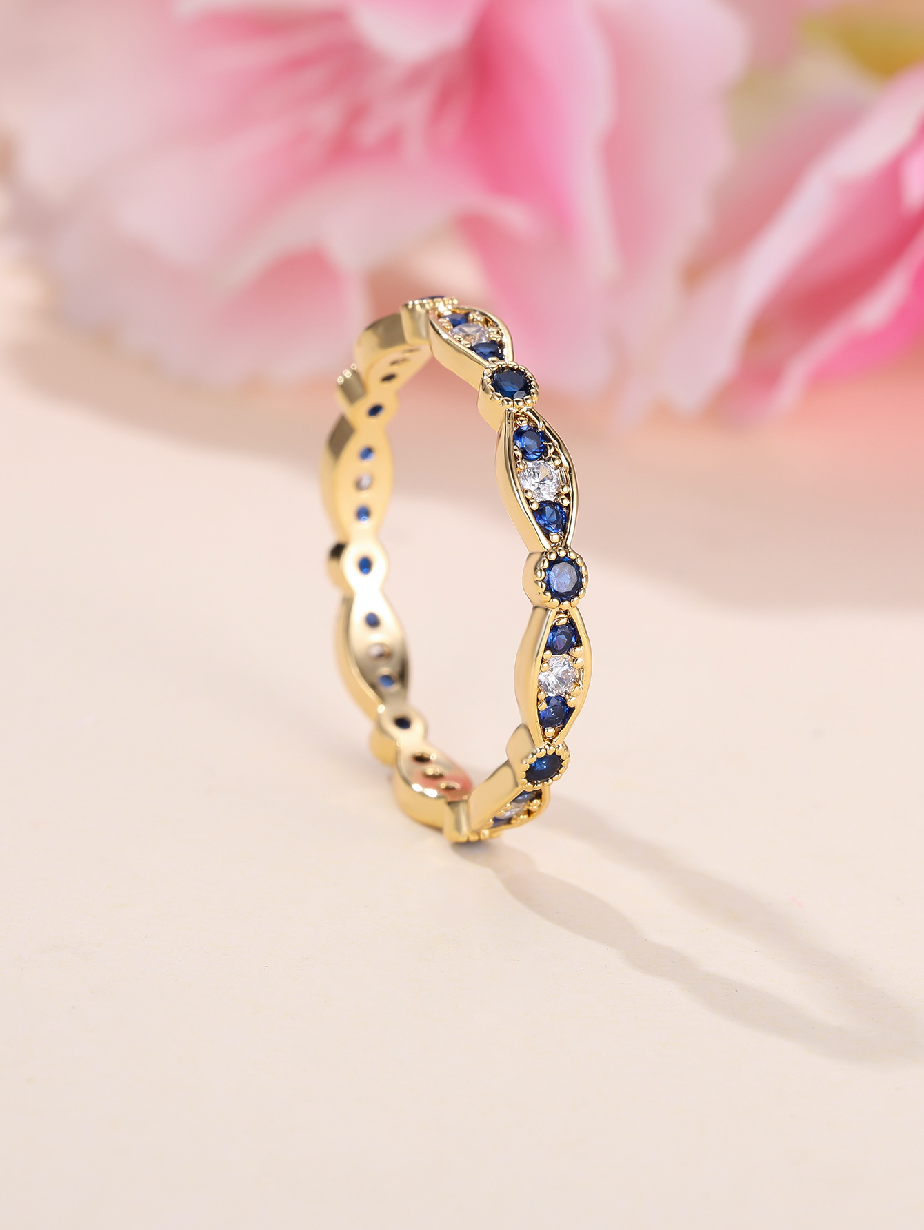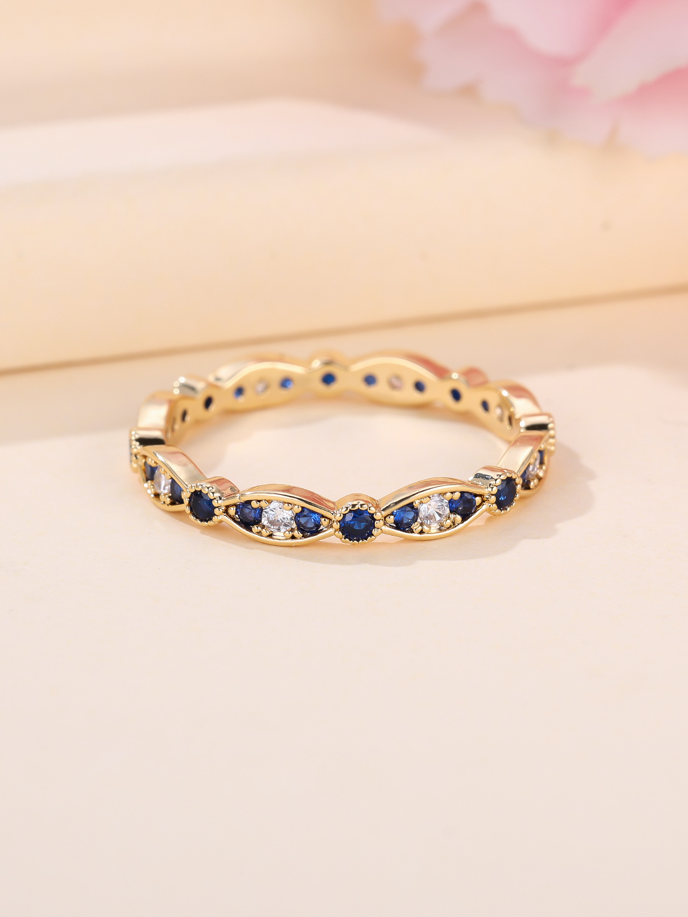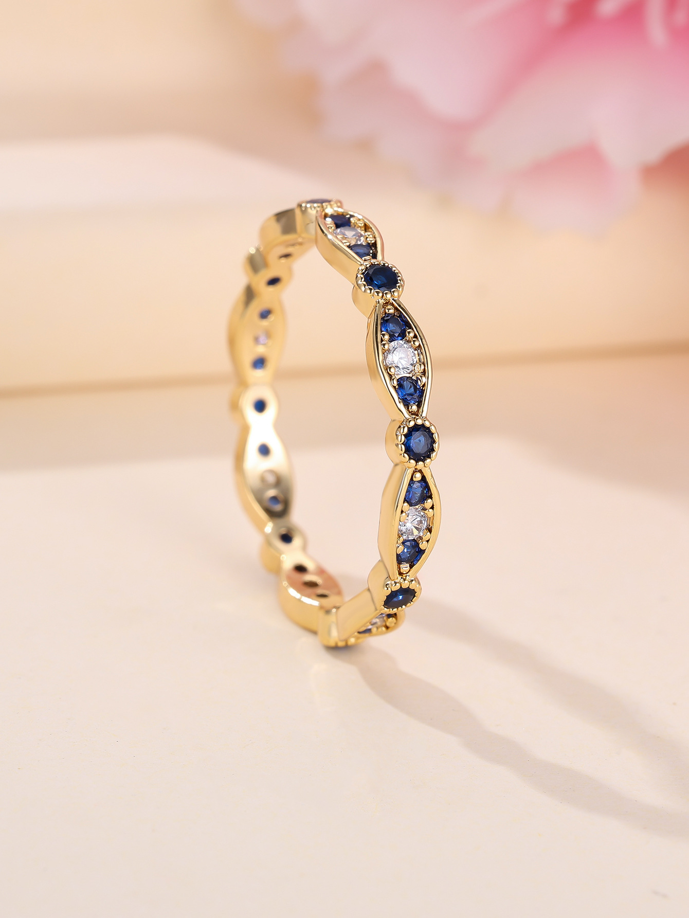 Golden Royal Blue Diamond-Edged White Diamond Light Luxury Women's Ring