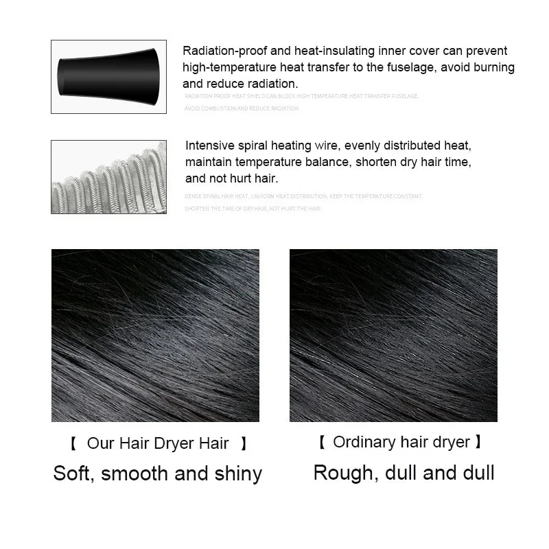 Hair Dryer 2200W Professional Powerful Hair Dryer Fast Heating Hot And Cold Adjustment Ionic Air Blow Dryer with Air Collecting