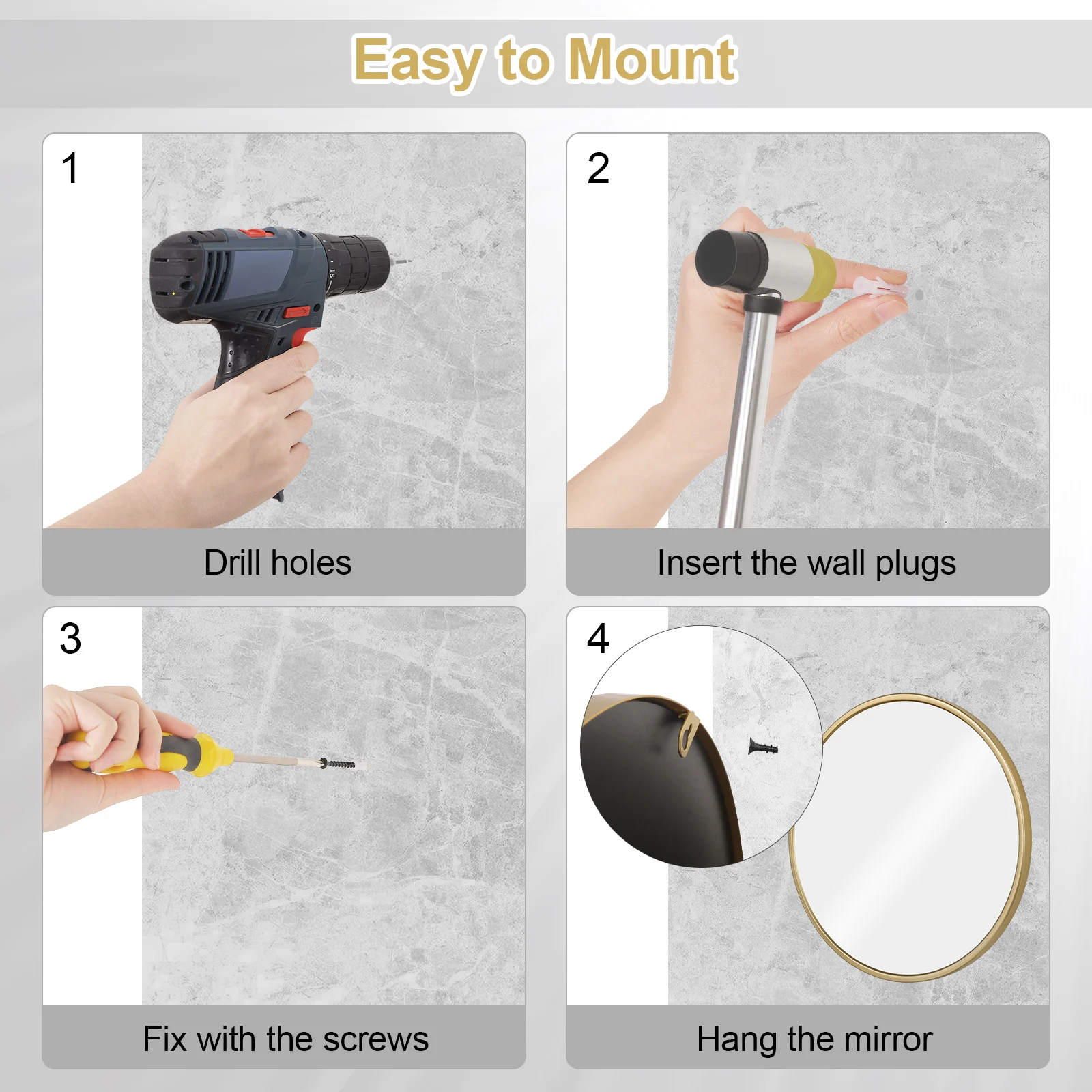 EASY INSTALLATION: The gold framed mirror is well packaged for safe transportation and comes with anchors, screws and the illustrated instructions so wall mounting should be very easy. Sizes available: φ 40/50/60 cm