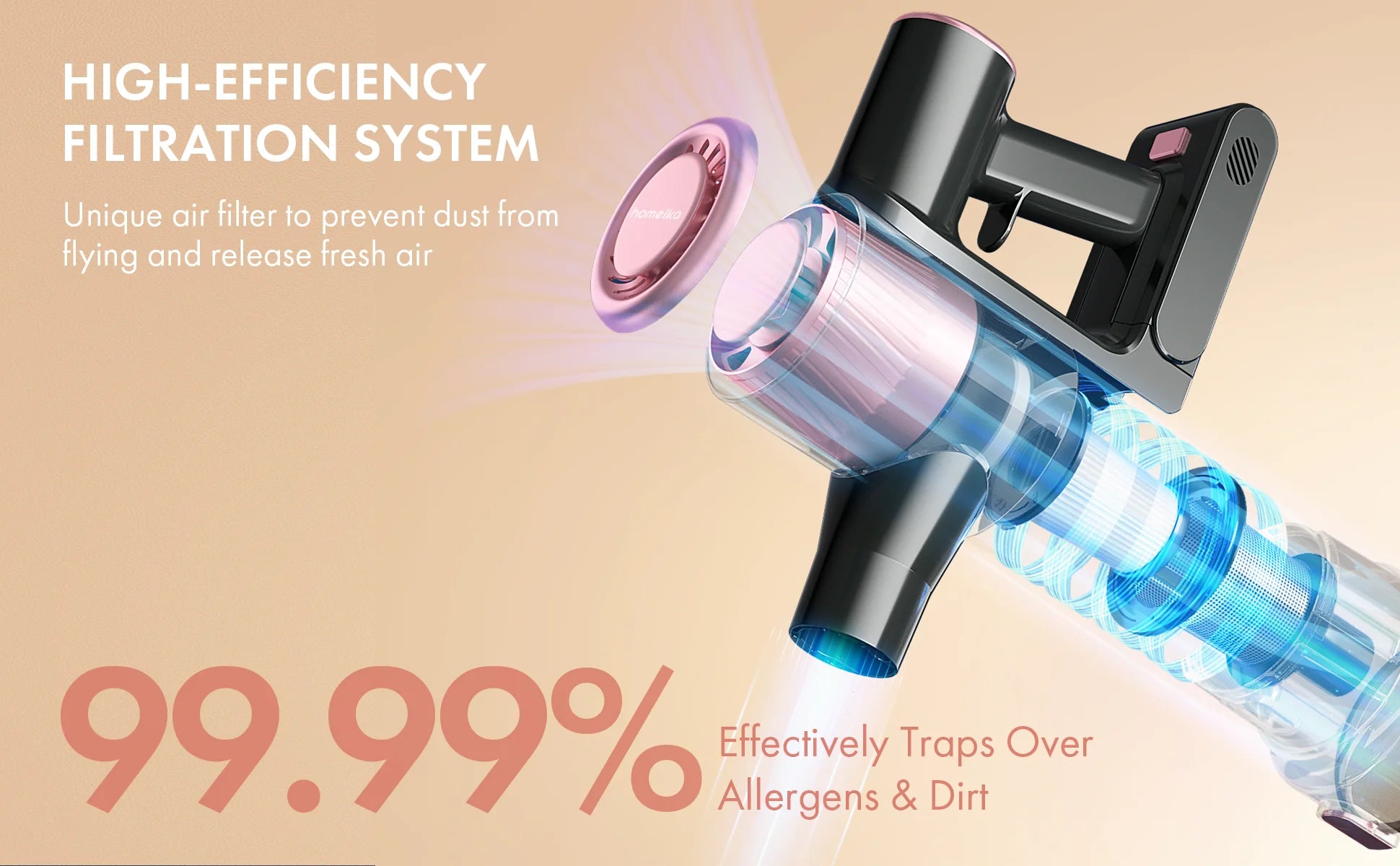 Homeika Cordless Vacuum Cleaner,28KPA 55mins Powerful Suction 8-in-1 LED Display,One-Click Dust Emptying for Pet Hair/Allergies