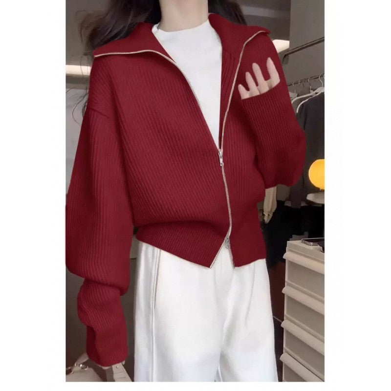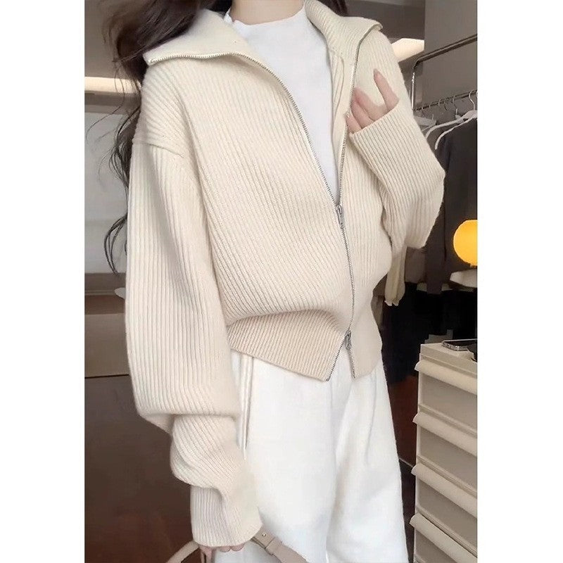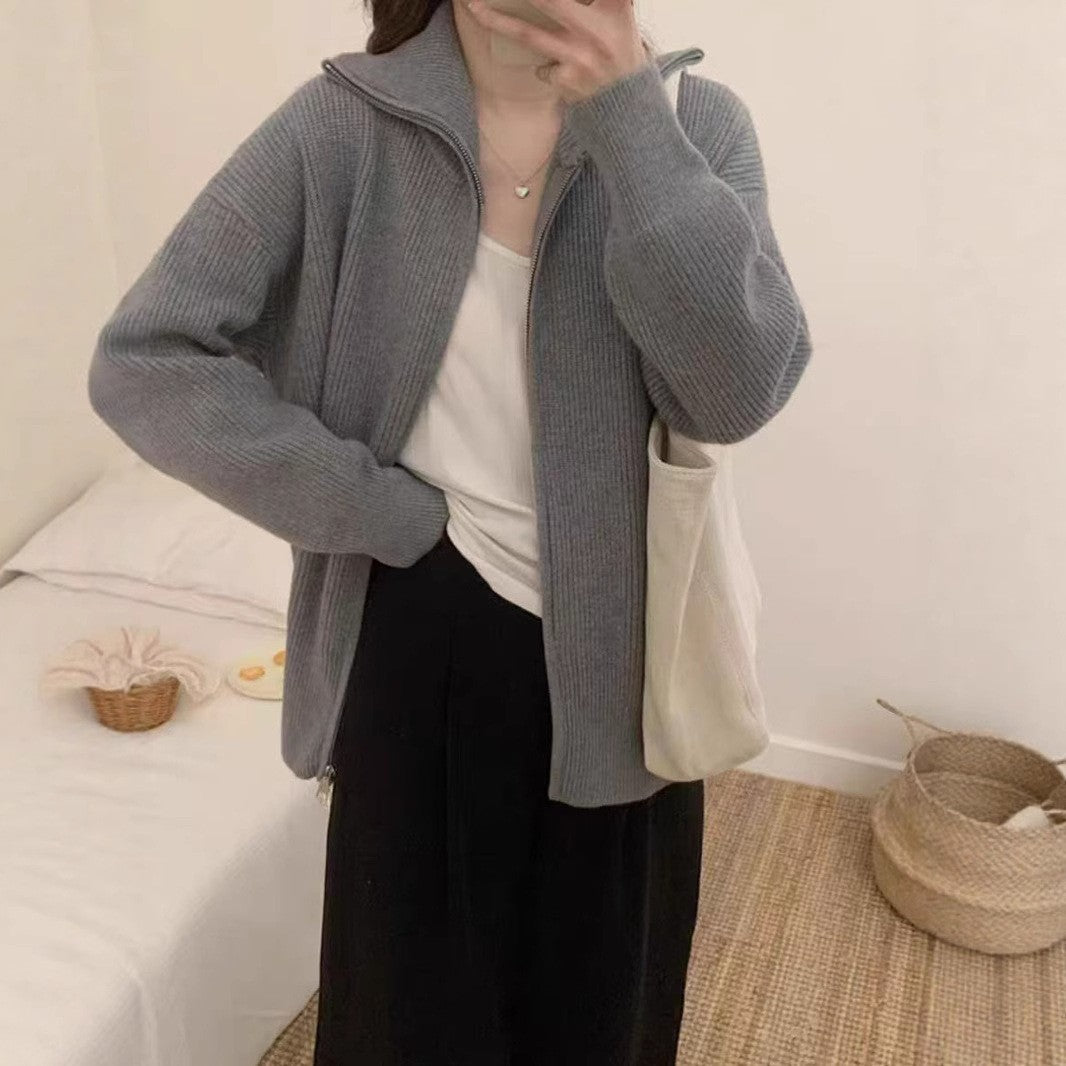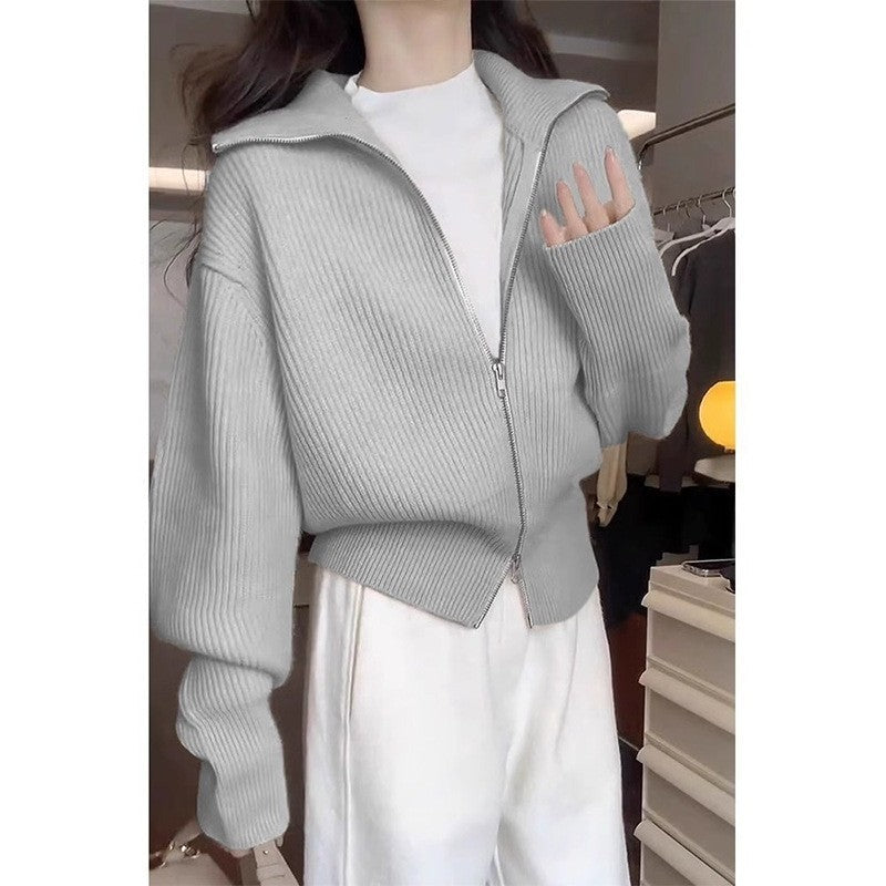 Hong Kong Style Design Double Zipper Knitted Cardigan Fashion Casual Jacket