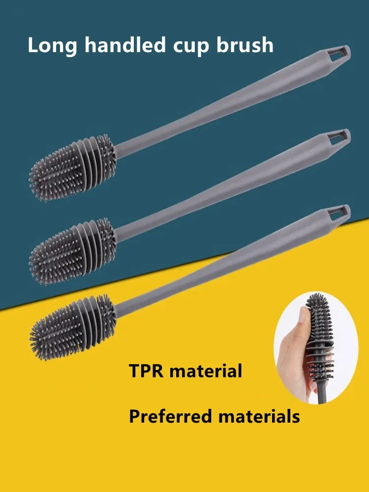 Hot Silicone Cup Brush Long Handle Milk Bottle Cleaning Brush Water Bottles Glass Cup Cleaner Scrubber Kitchen Cleaning Tools