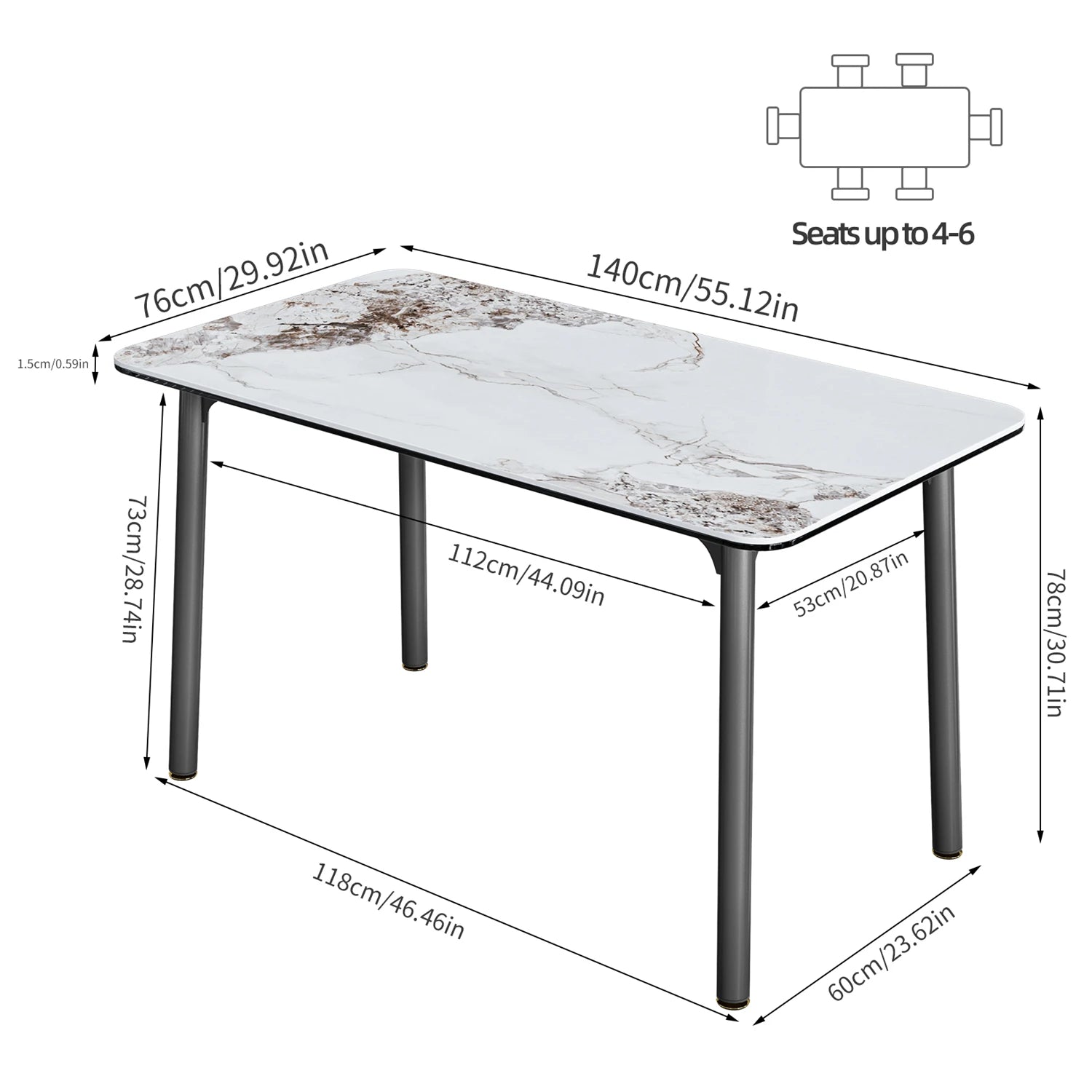 Ink Texture Sintered Stone & Glass Top Kitchen Dining Table No Chairs Rectangle Slate Dinner Table for Restaurant Cafe 1.4/1.6M